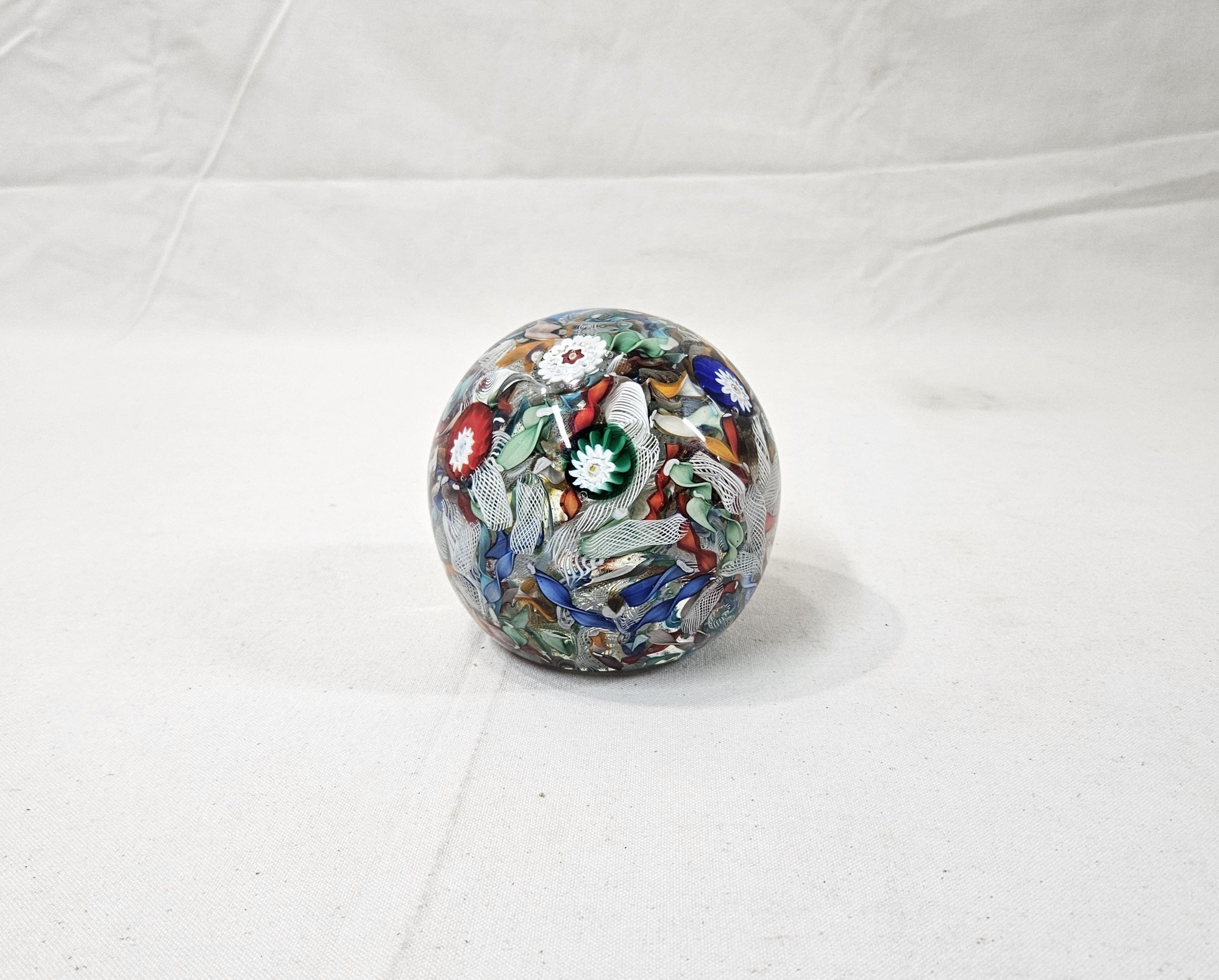 Vintage Murano scrambled millefiori & cane magnum glass paperweight.