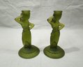 Notes: Vintage Pair of Fostoria Rebecca at the Well Green Glass Candlesticks are pre-owned showing signs of wear commensurate with age & use. Please contact for further condition report or photos.
