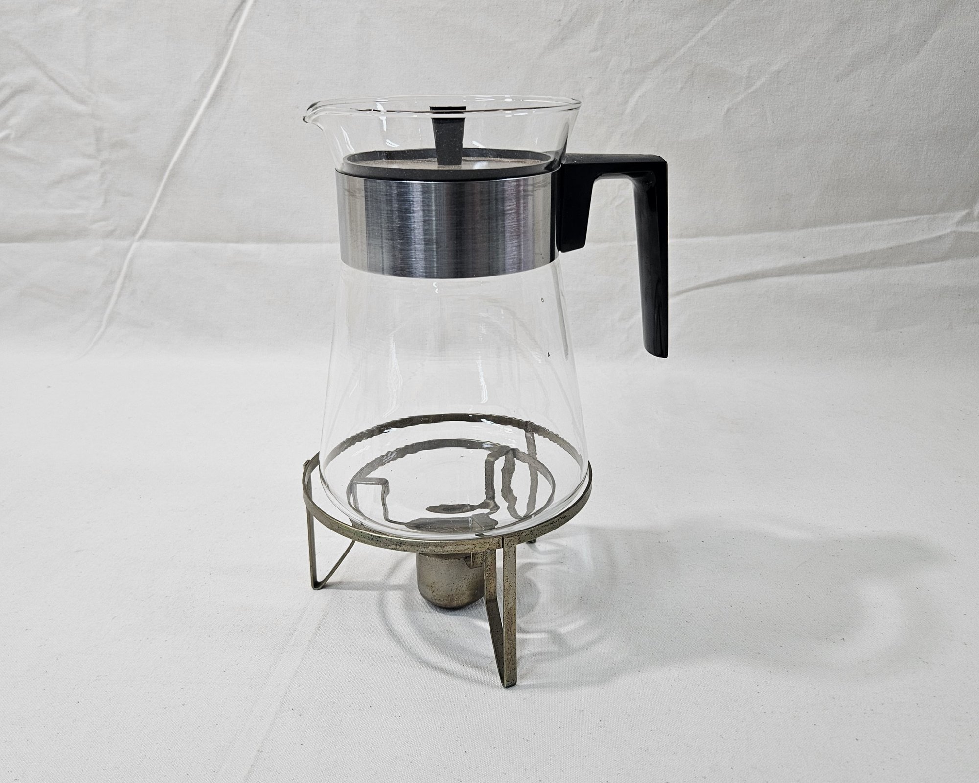Vintage Pyrex 6-cup carafe with candle warmer. Produced by Corning Glass Works.
