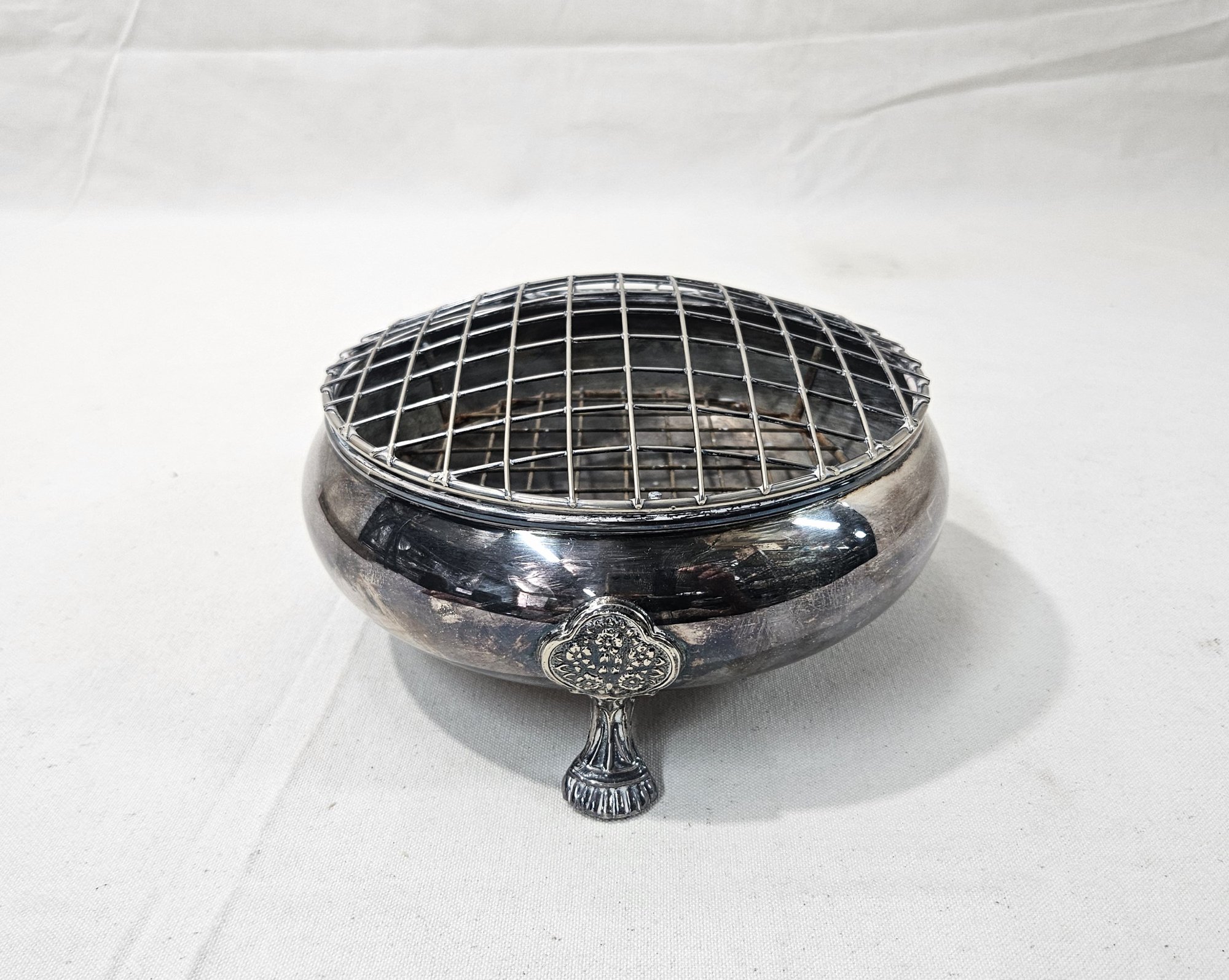 Notes: Vintage Silverplate Footed Rose Bowl is pre-owned showing signs of wear commensurate with age & use. Please review photos.