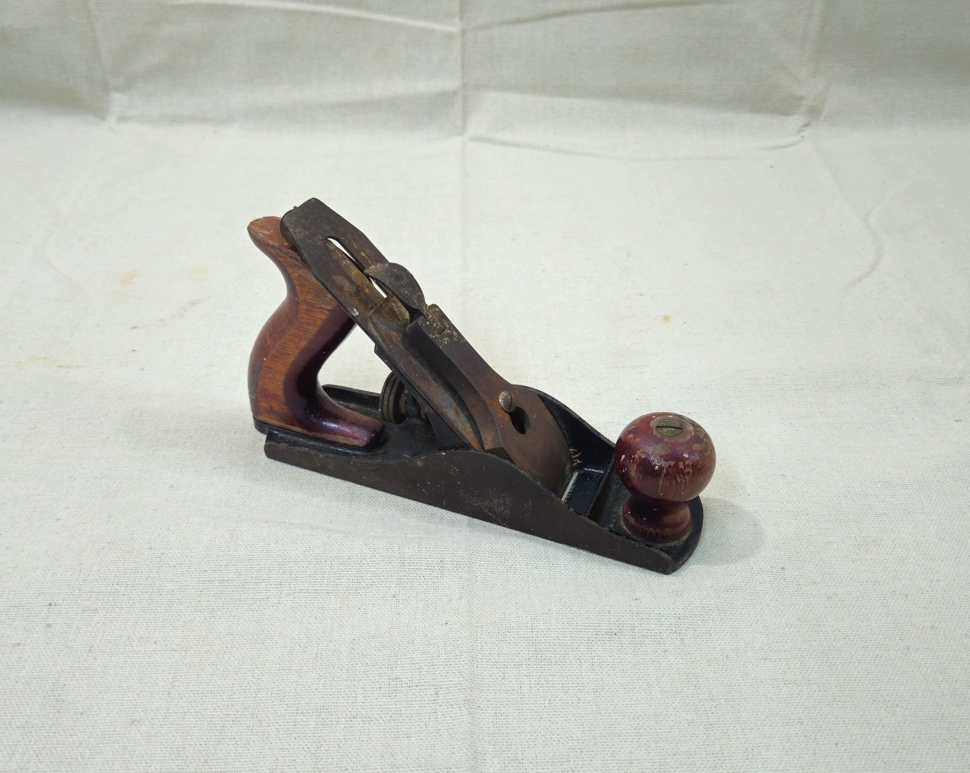 Vintage No. 4 wood bench plane. Attributed to Stanley/Bailey. Marked Made in USA.