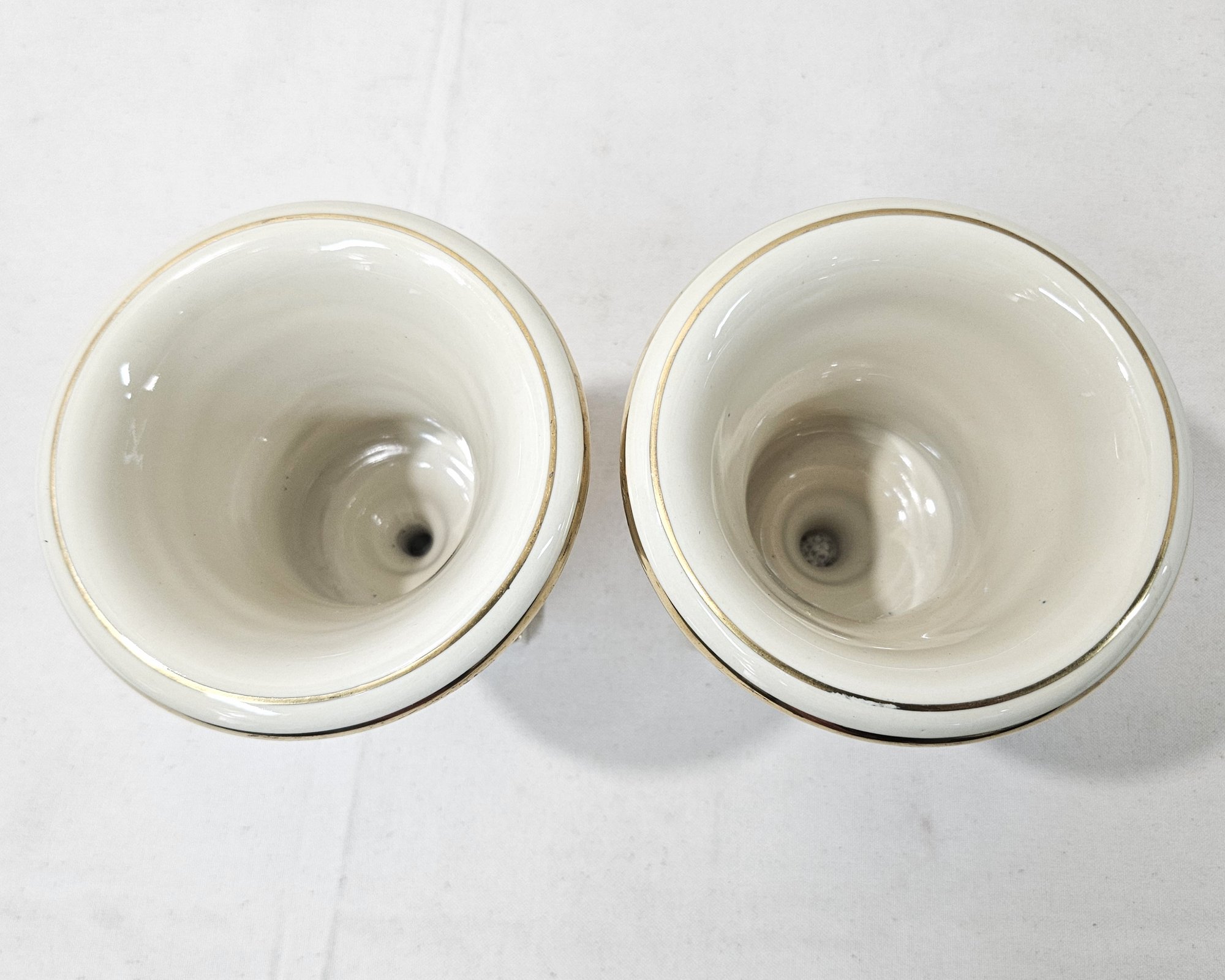 Notes: Vintage Trenton Pottery Porcelain Urn Vases Set is pre-owned showing signs of wear commensurate with age & use. Please review photos.