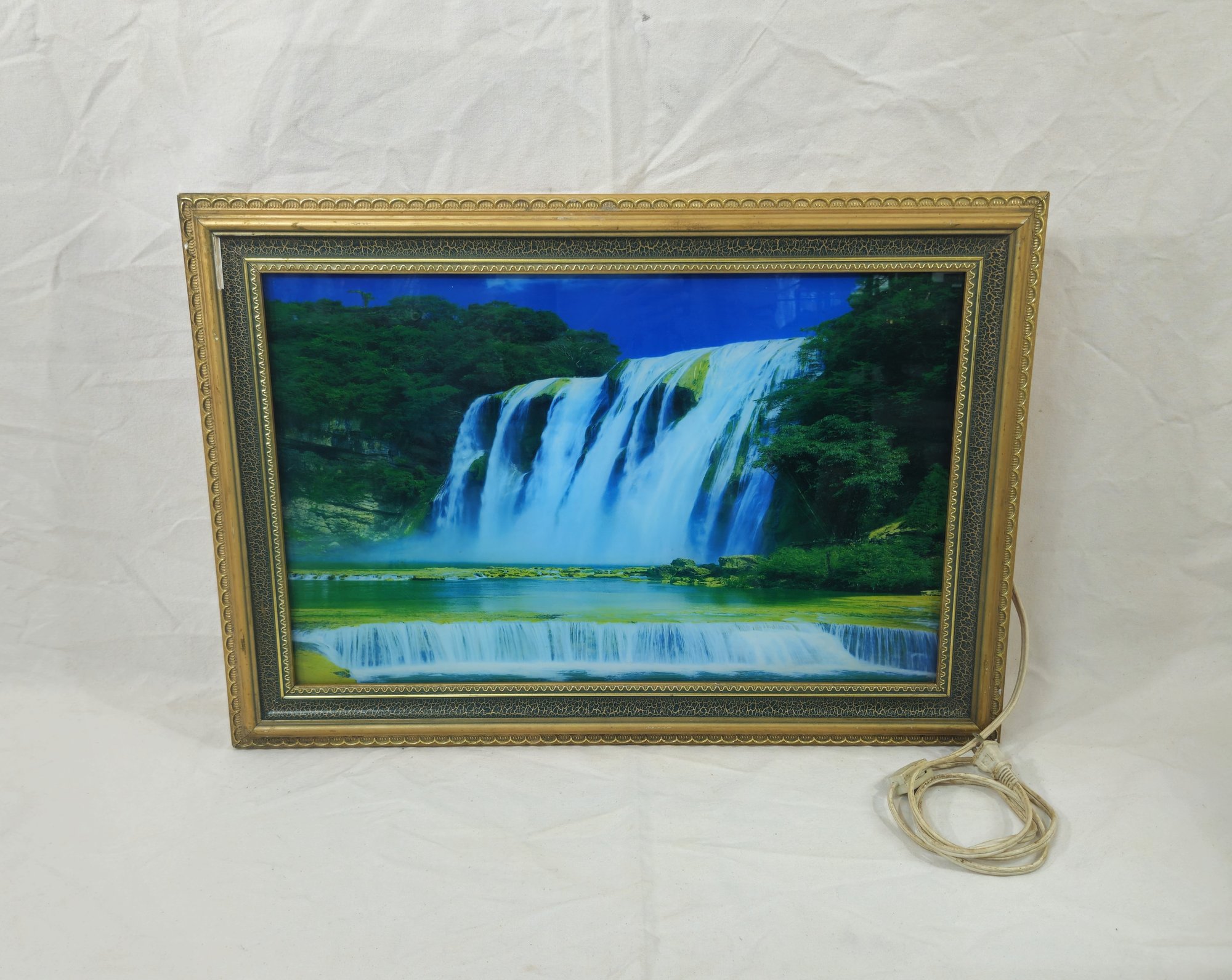 Notes: Vintage Waterfall Moving Picture Wall Art is pre-owned showing signs of wear commensurate with age & use. Waterfall moving picture wall art is tested & working. Outer frame with some blemishes. Please review pictures.