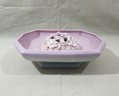 Vintage Weller Pottery Lavonia Flower Frog Set including a basin and a matching floral-designed lattice flower frog in a pastel pink and blue glaze. Flower frog marked with impressed Weller stamp to underside.