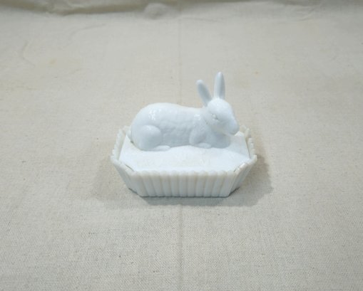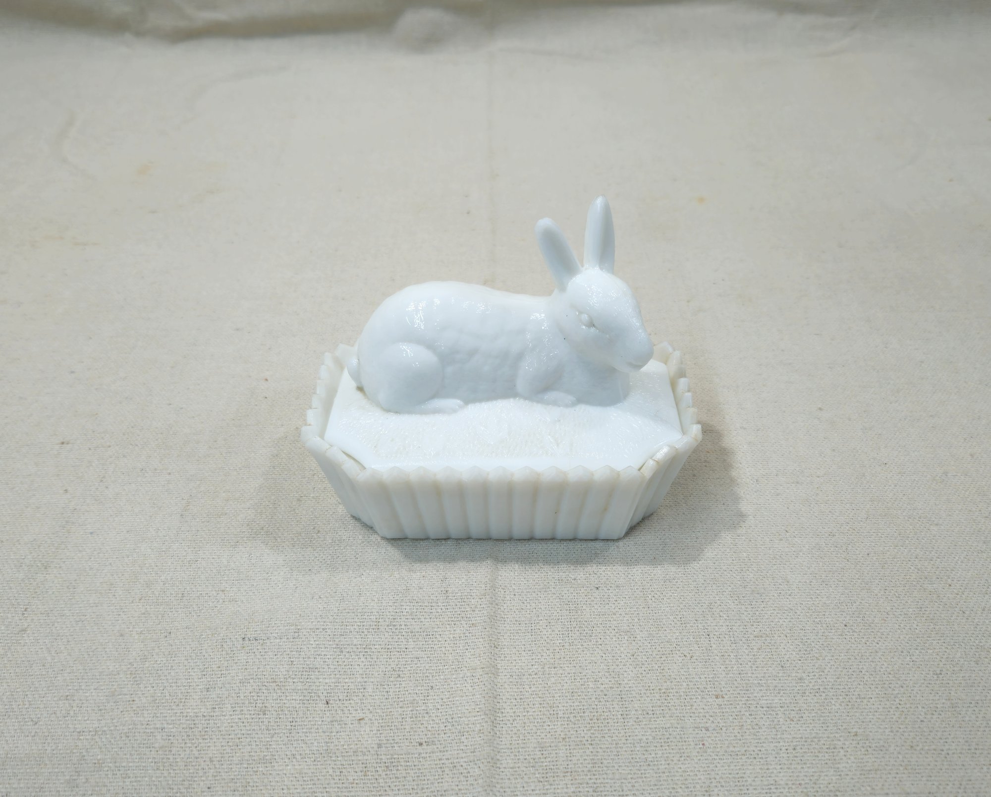 Vintage Westmoreland Rabbit on Nest milk glass covered dish.