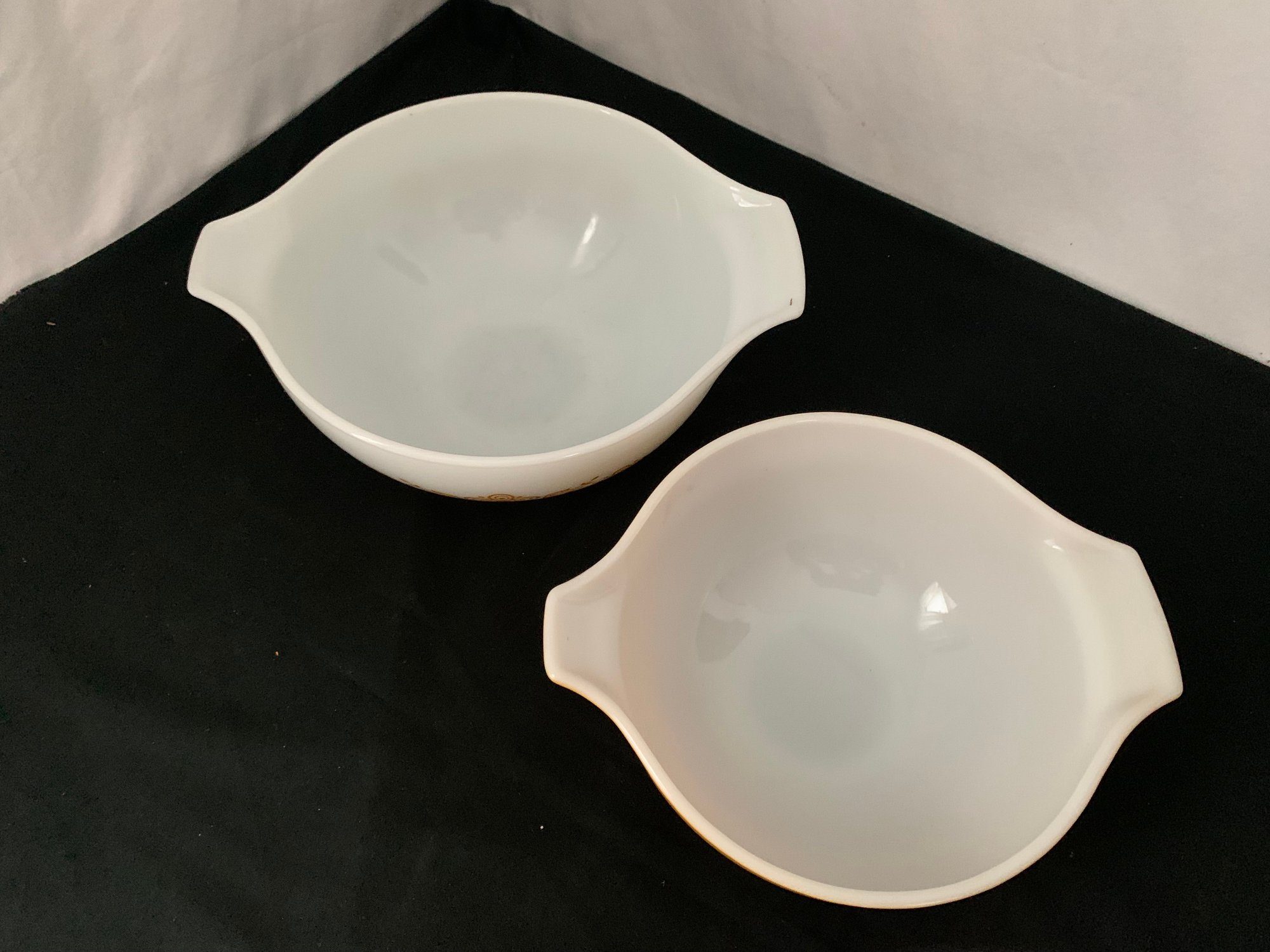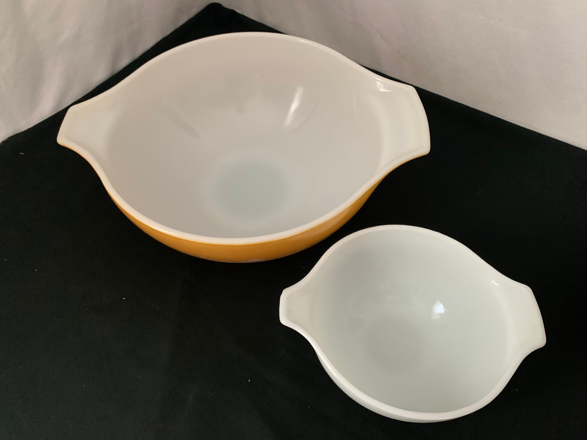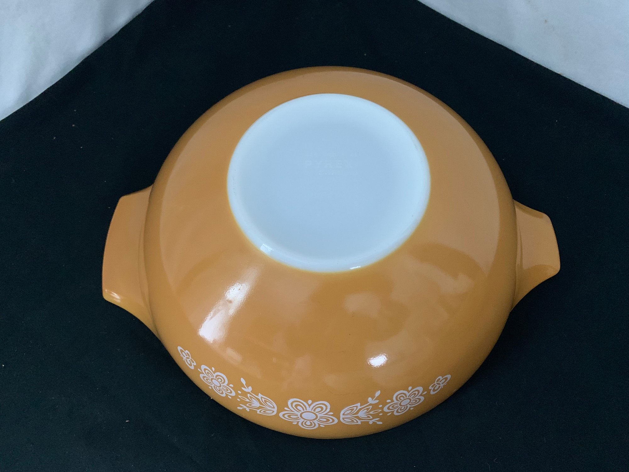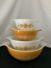 Notes: Pyrex Butterfly gold mixing bowl set is pre-owned showing light wear commensurate with age & use and have no apparent identifiable flaws. Please review pictures.