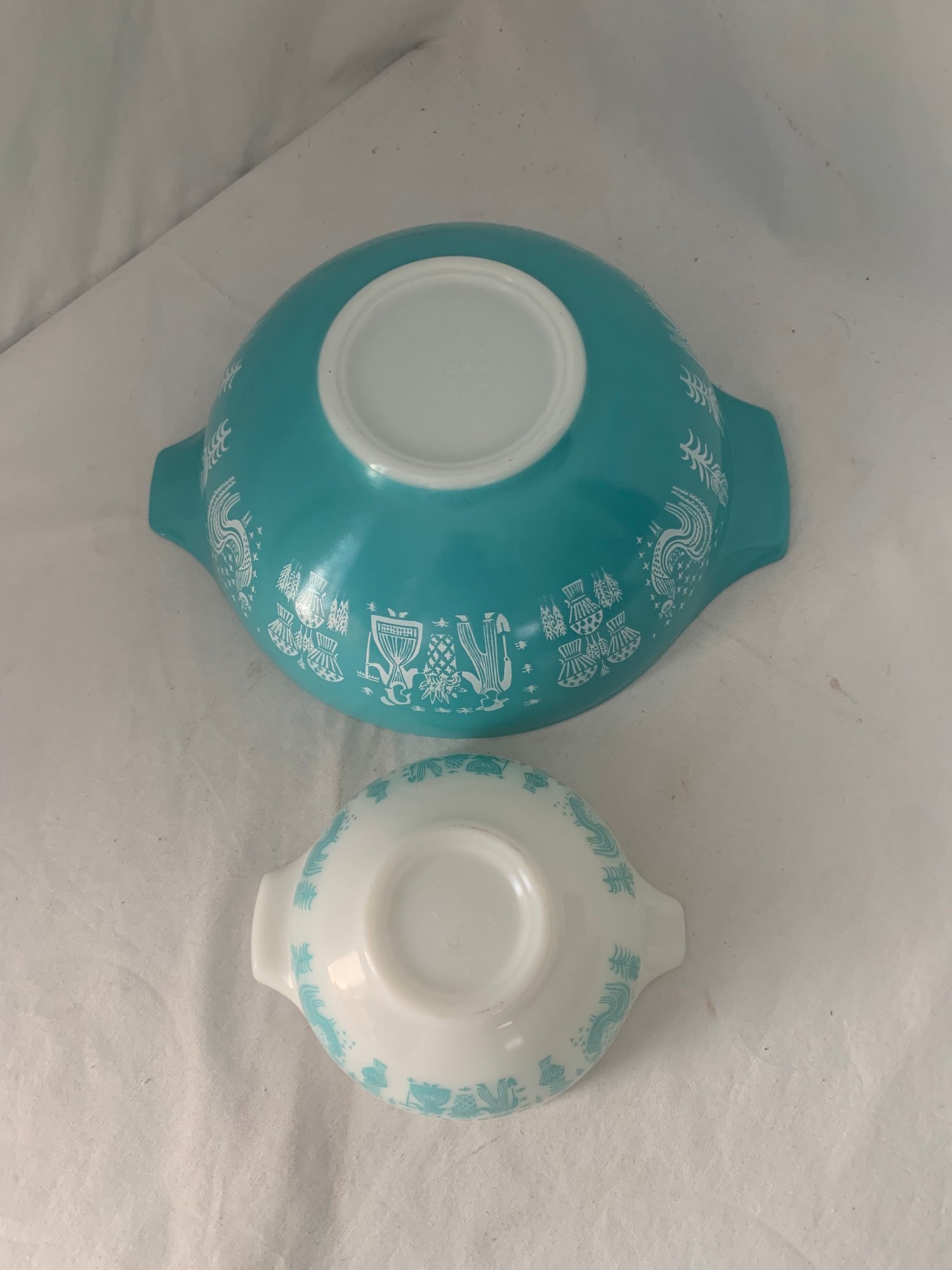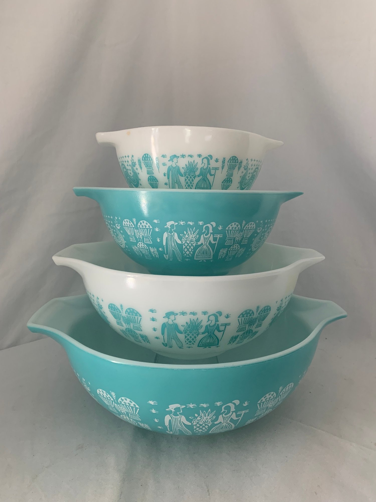 Notes: Pyrex Butterprint Cinderella Bowl Set is pre-owned showing light signs of wear commensurate with age & use and all bowls with no major apparent identifiable blemishes or flaws. Please review pictures.