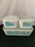 Notes: Pyrex Butterprint refrigerator set is pre-owned showing light wear commensurate with age & use with no apparent flaws. Please review pictures.