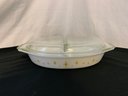 Notes: Pyrex Constellation divided casserole/serving dish is pre-owned showing light signs of wear commensurate with age & use with no major apparent flaws. Please review pictures.
