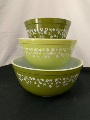 Notes: Pyrex Spring Blossom bowl set is pre-owned showing light wear commensurate with age & use with no apparent flaws. Please review pictures.