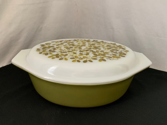 Notes: Pyrex Verde Olives 045 casserole w/lid is pre-owned showing light wear commensurate with age & use with no apparent flaws. Please review pictures.
