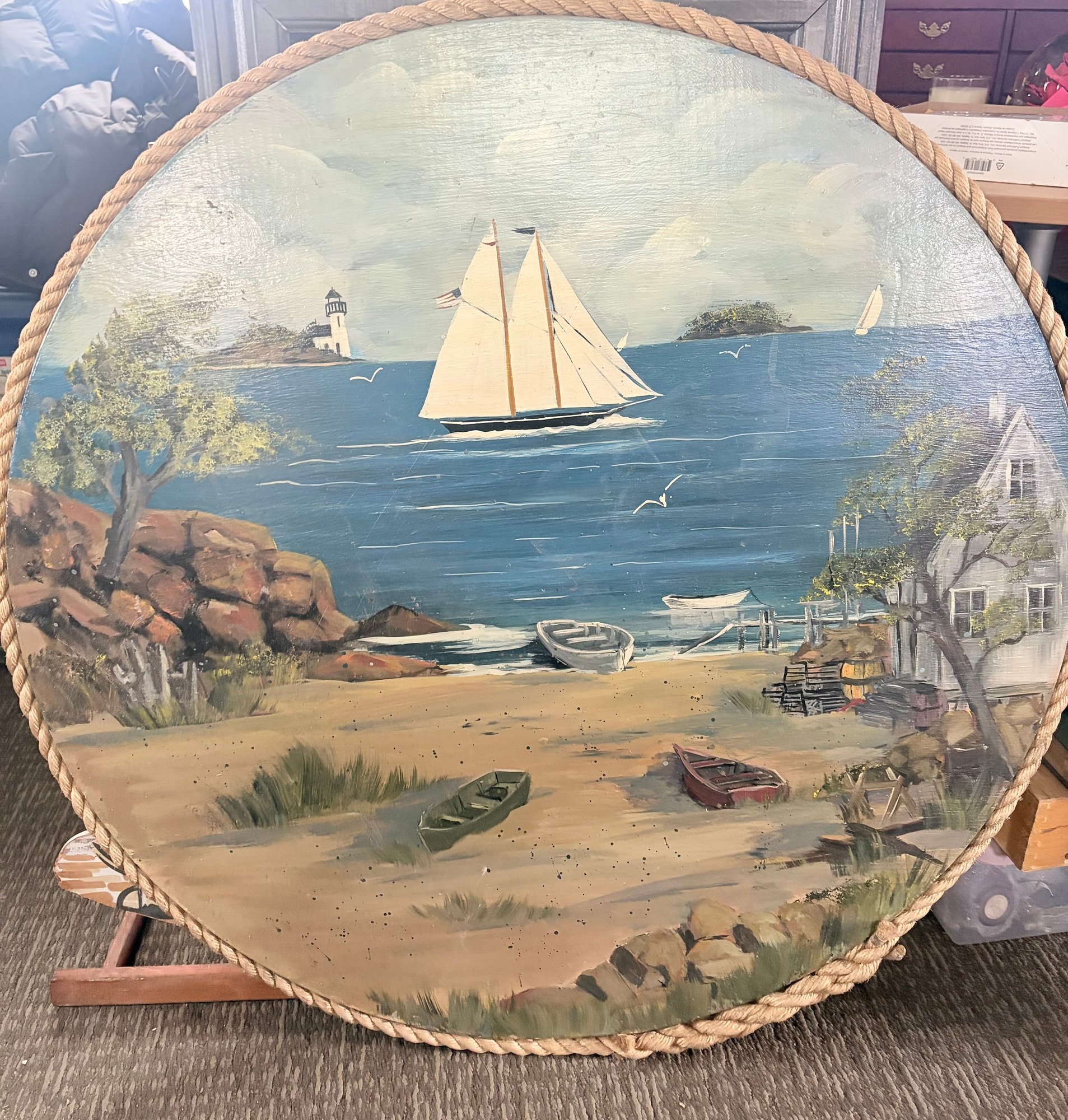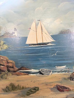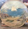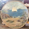 37 Round Vintage Large Sailboat Painting Nautical Theme
