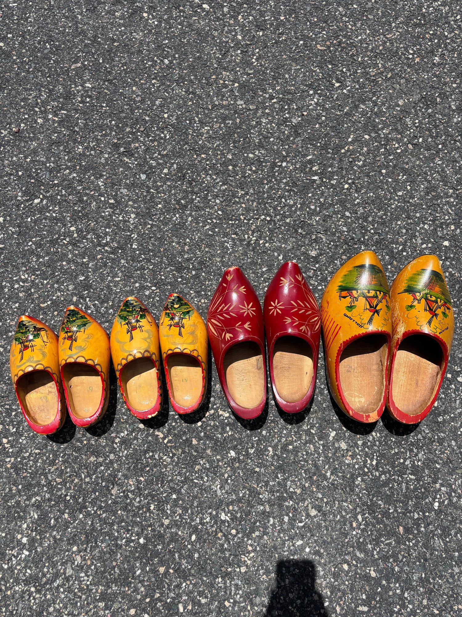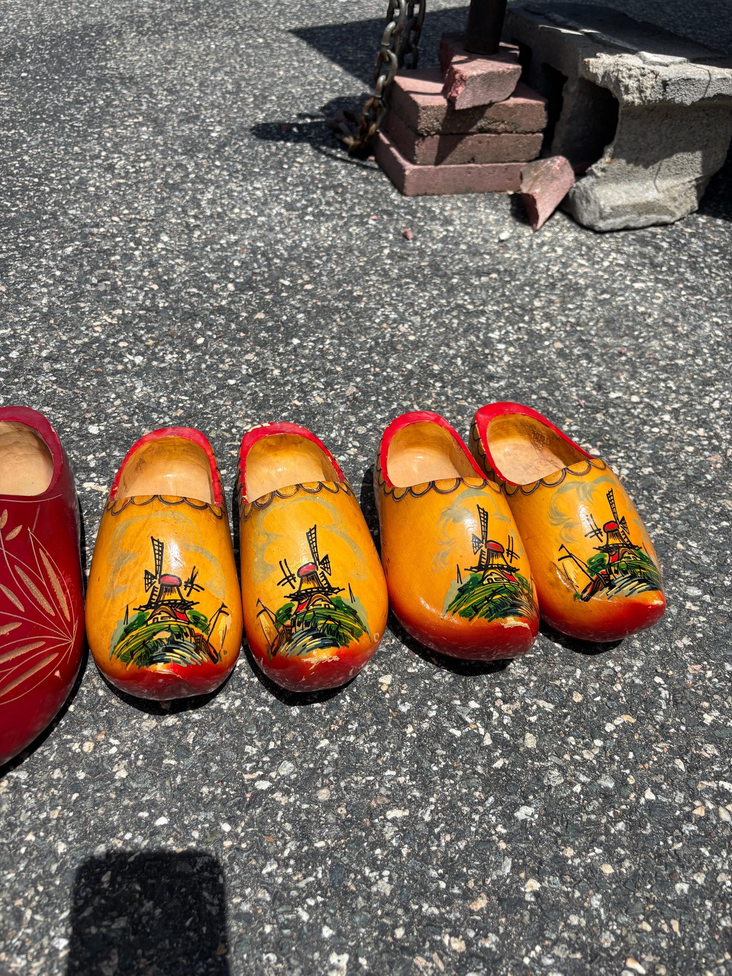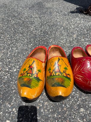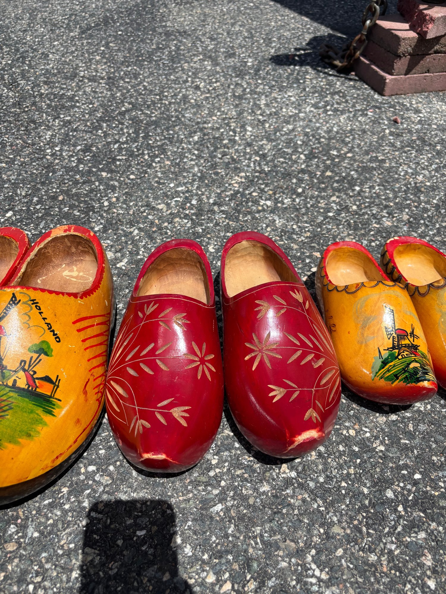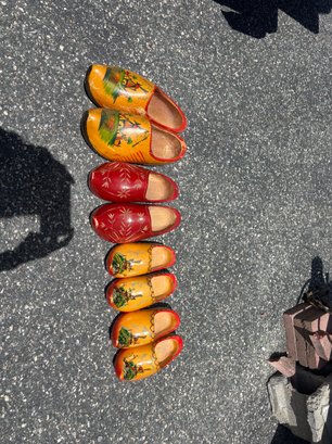 4 Pairs Of Vintage Handmade Dutch Wooden Clogs