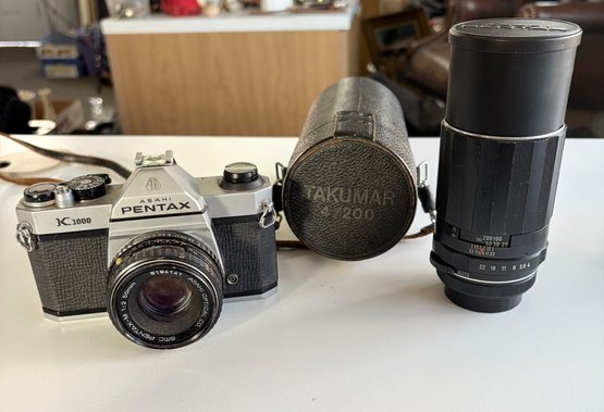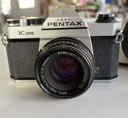 Asahi Pentax K1000 35mm Film Camera And 50 Mm F/2 Lens With Case