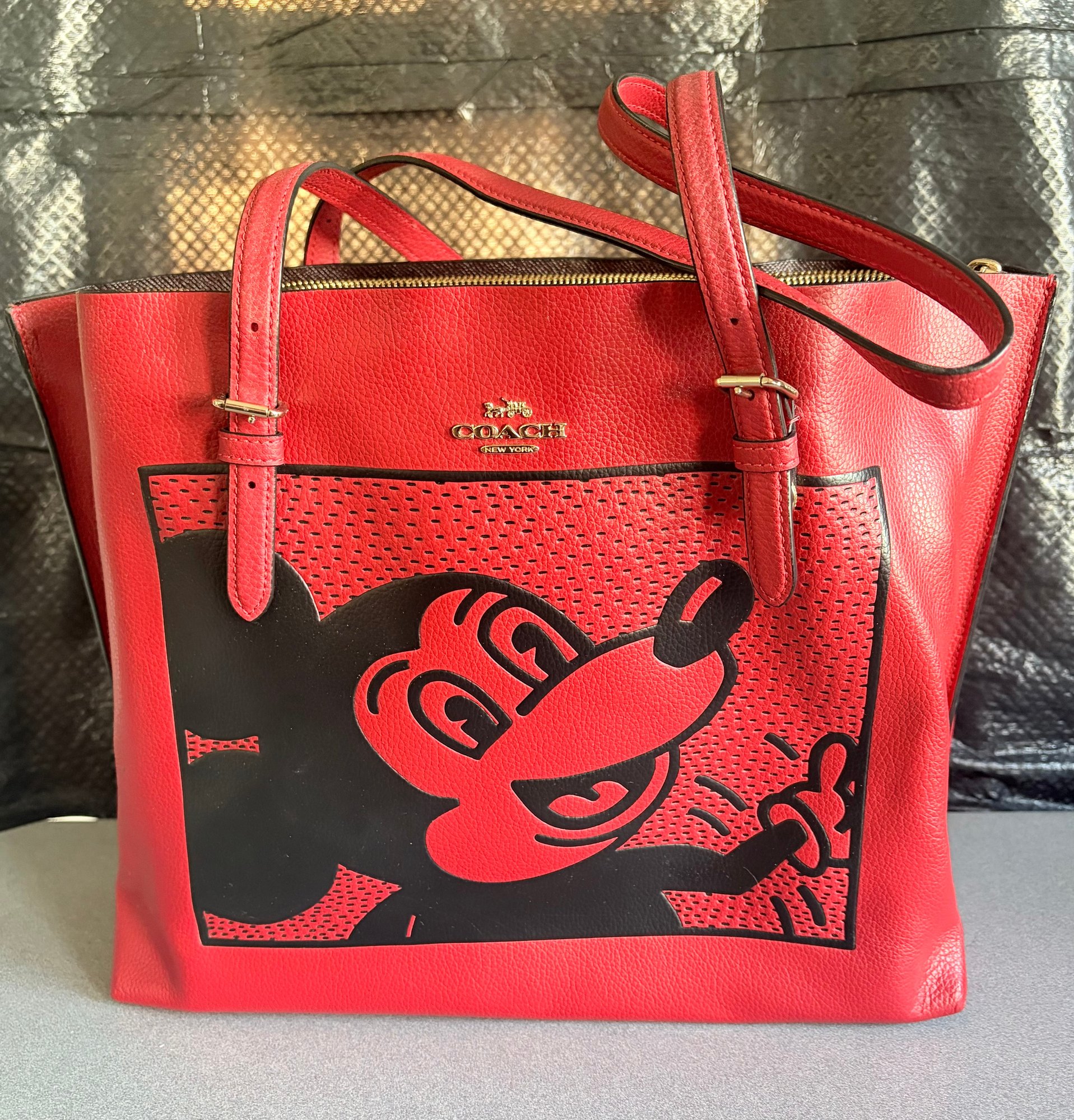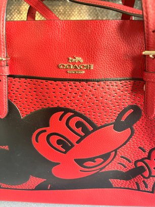 Coach Disney Mickey Mouse X Keith Haring Mollie Tote Bag In Electric Red Leather