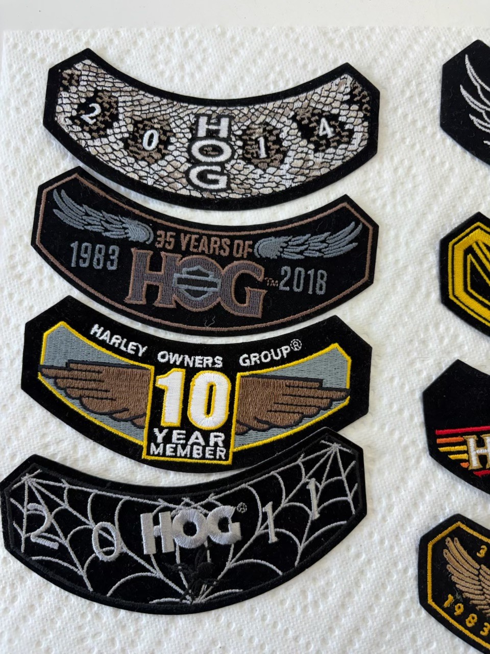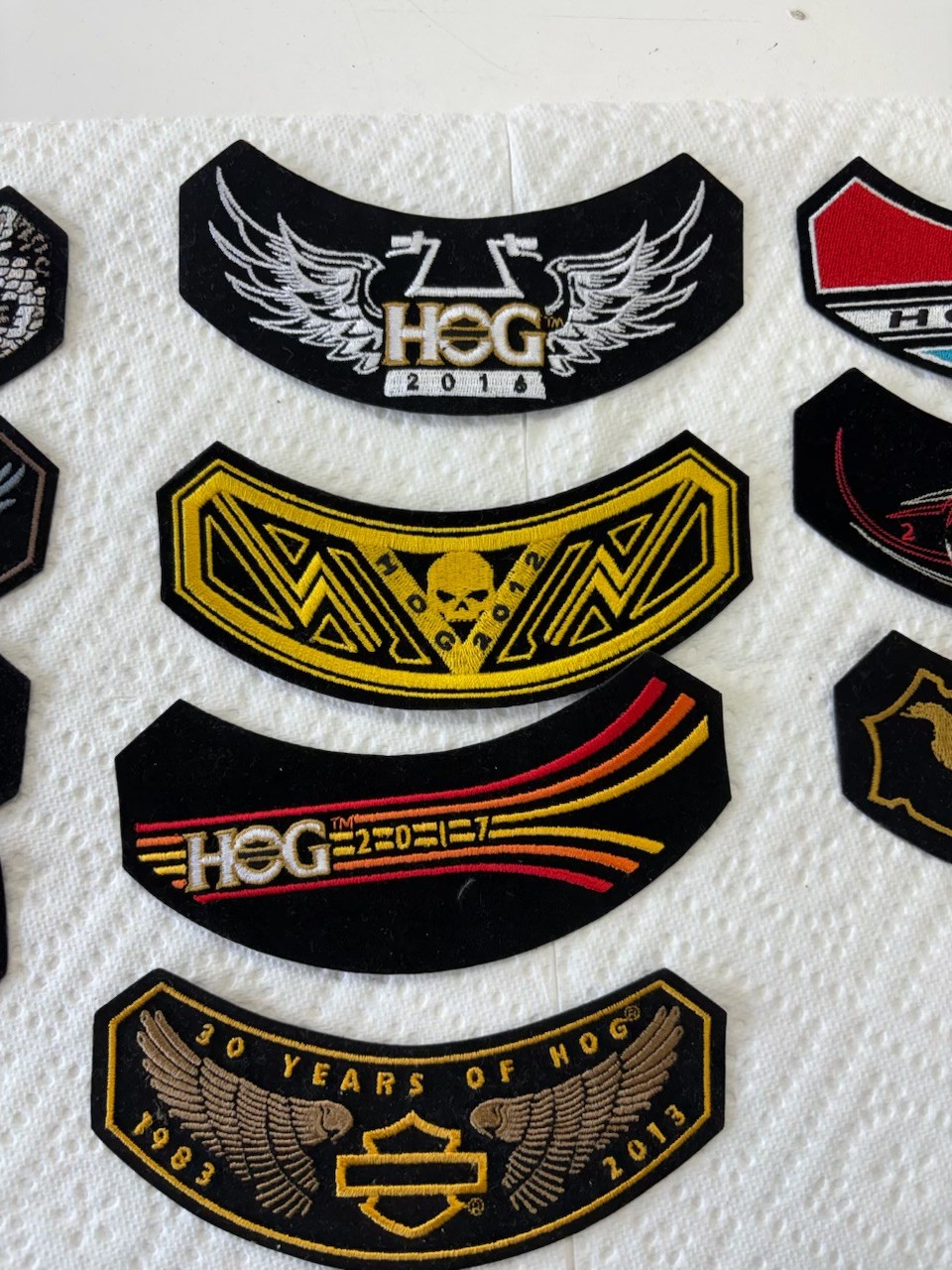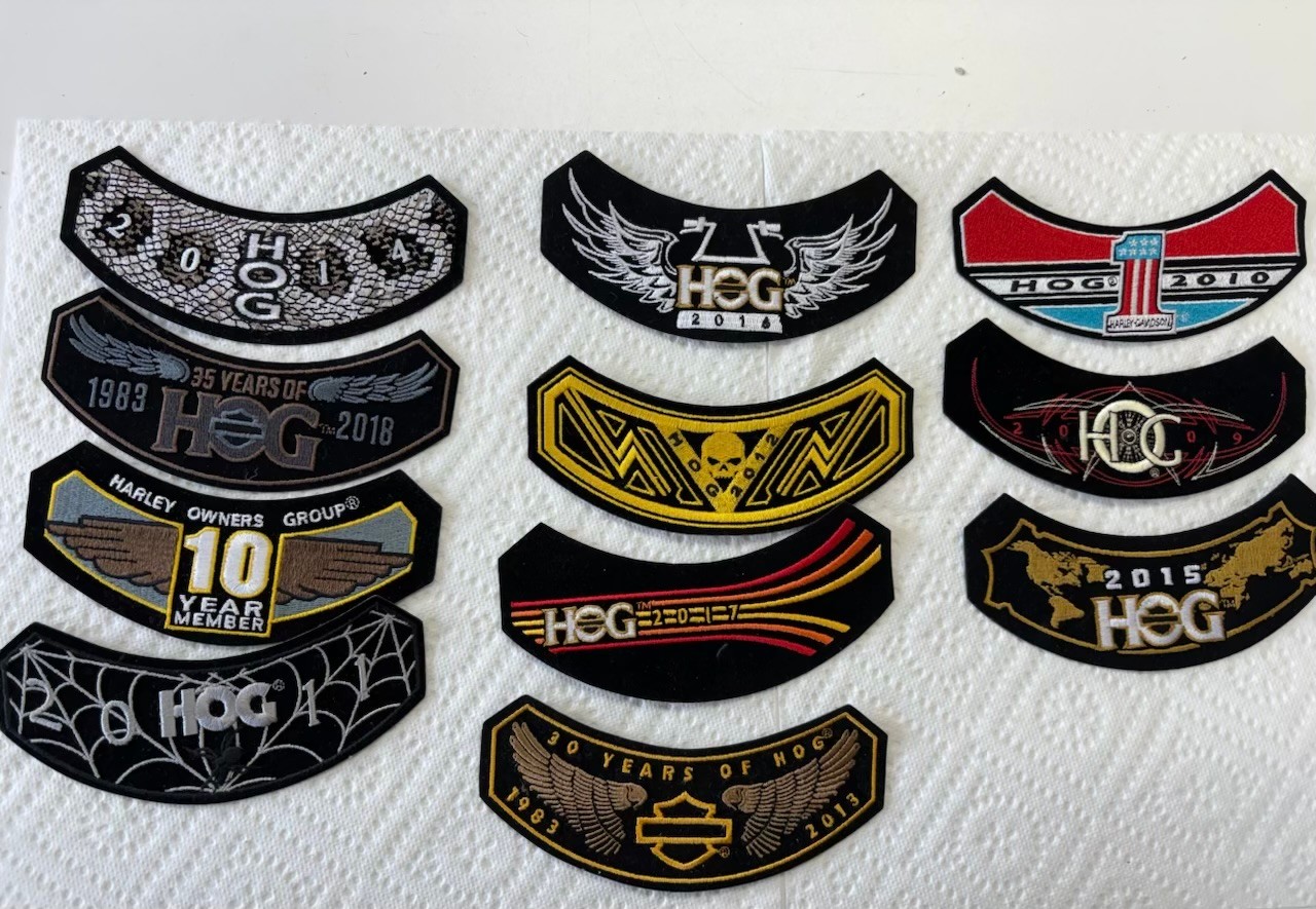 Collection Of Assorted Harley Davidson Owners Group Rocker Patches