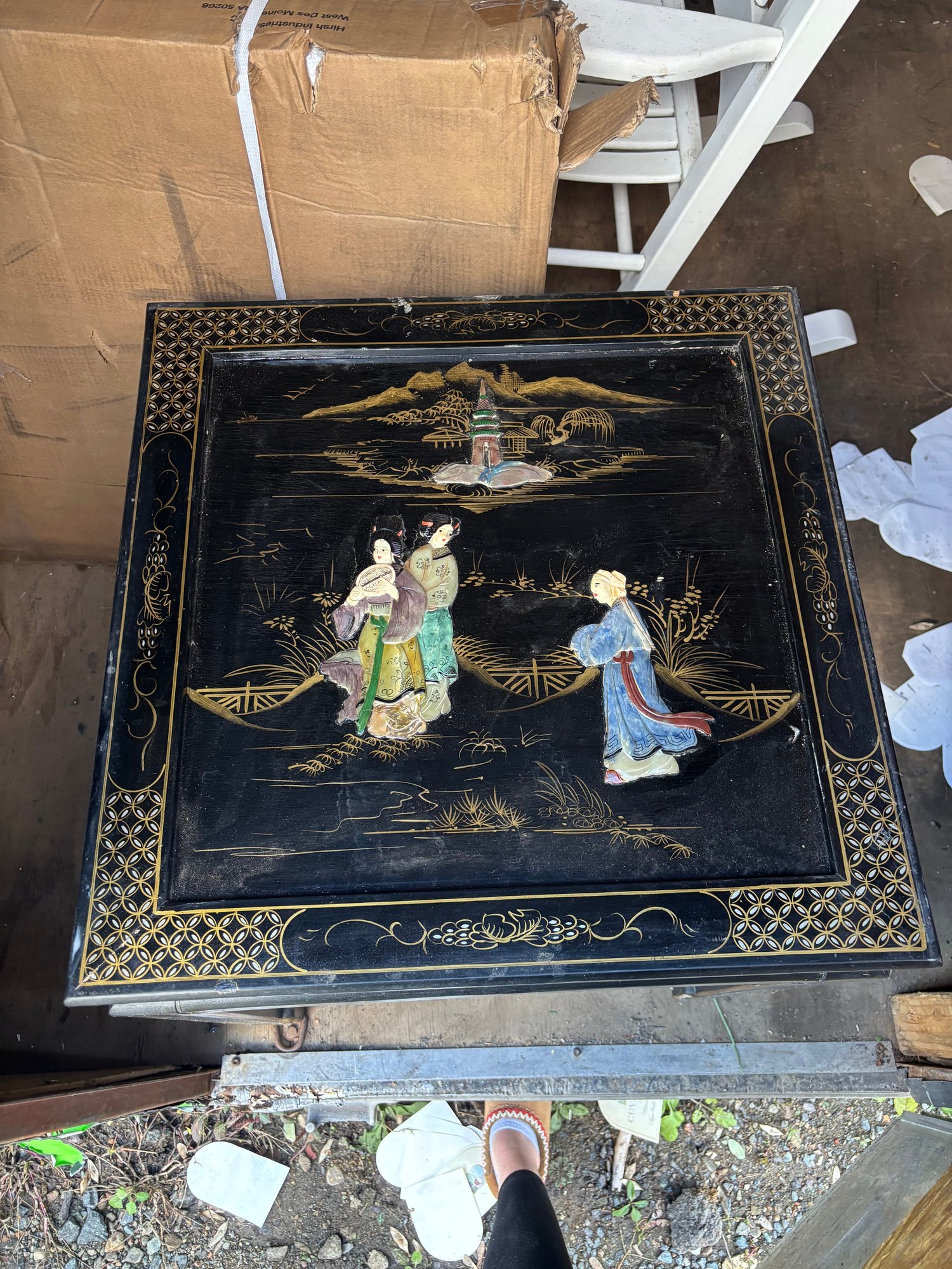 Vintage Black Lacquer Chinoiserie Side Table