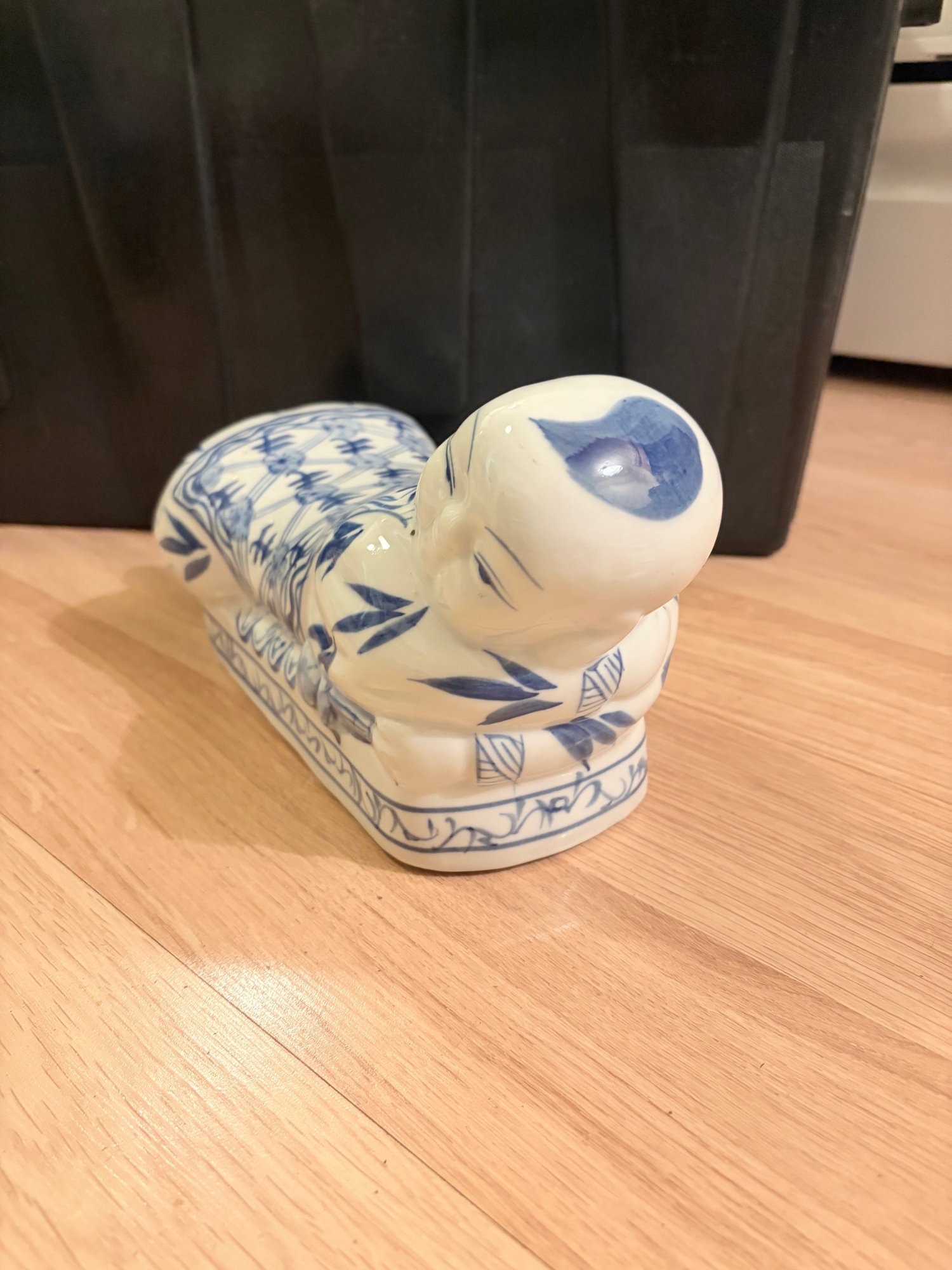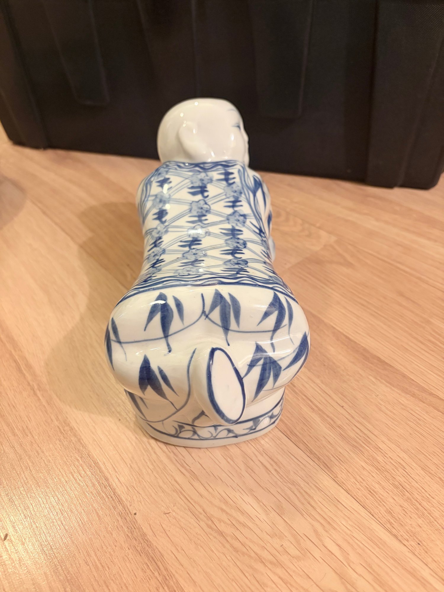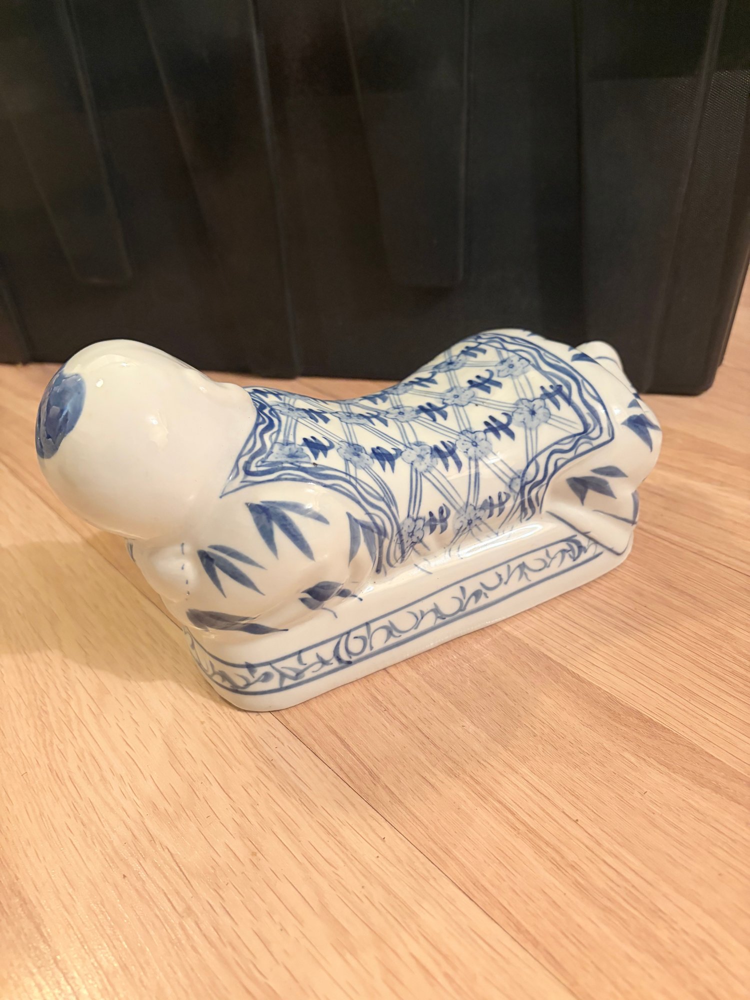 Vintage Chinese Blue And White Porcelain Pillow Head Rest Buddha