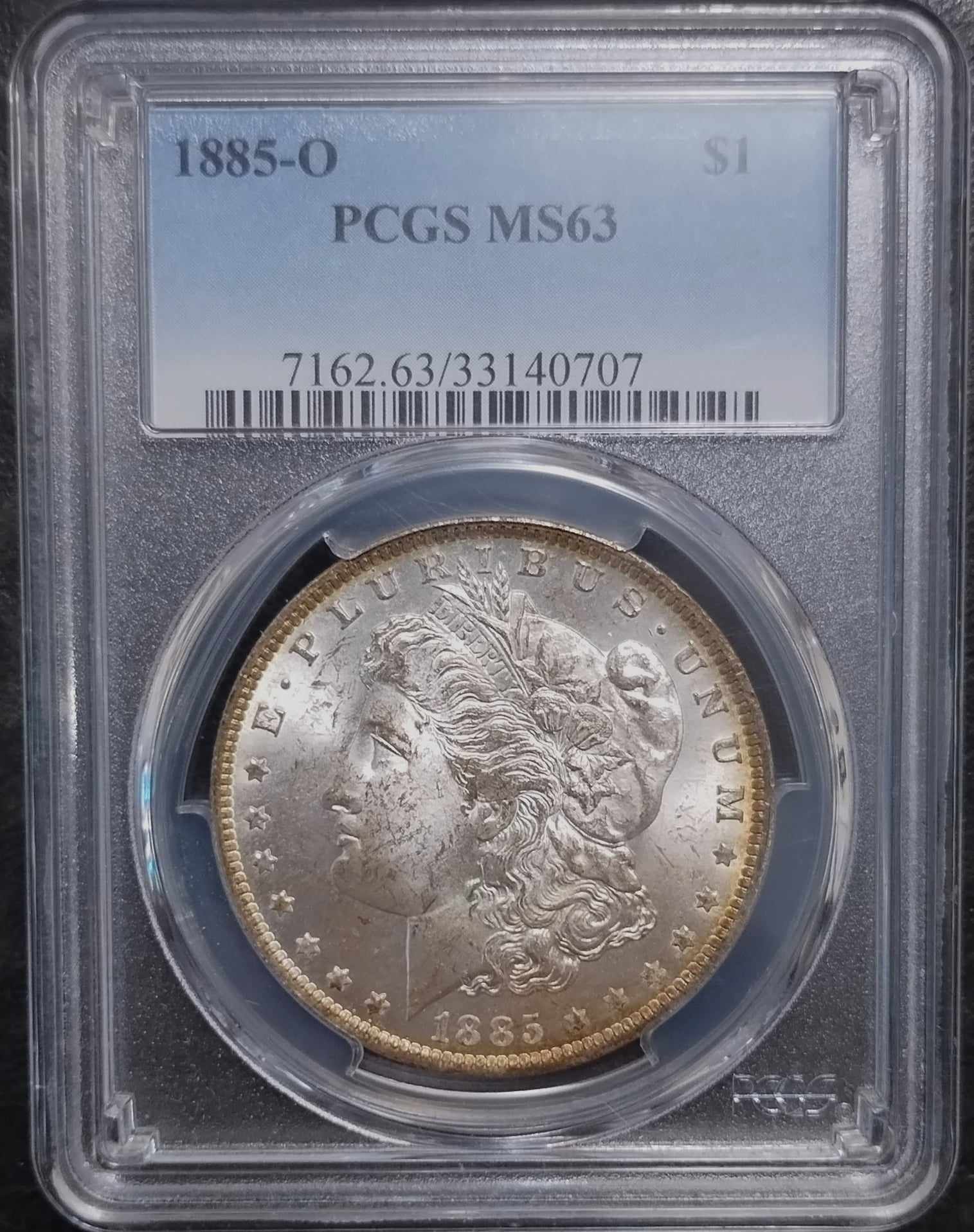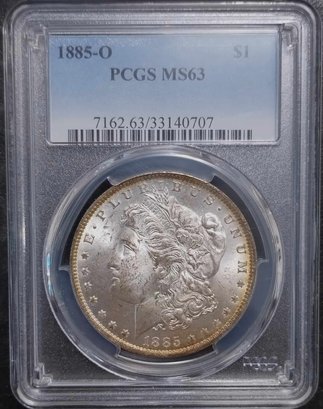 1885-O MORGAN SILVER DOLLAR PCGS MS-63 LIGHT OBVERSE TONE