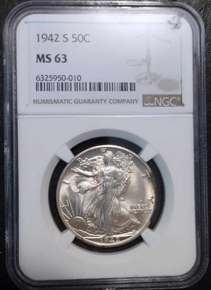 1942-S WALKING LIBERTY HALF DOLLAR NGC MS-63 BRIGHT WHITE SHARP AND LUSTROUS