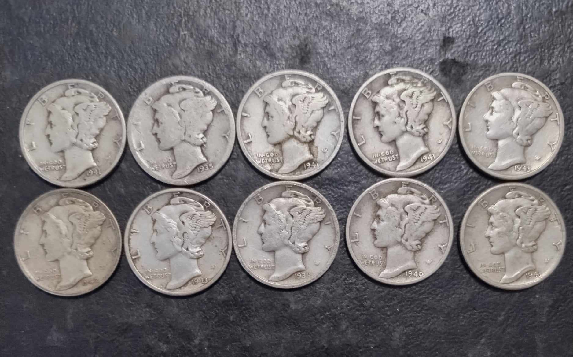 3. 90 Percent Pure Silver. Mixed years, some mint marks