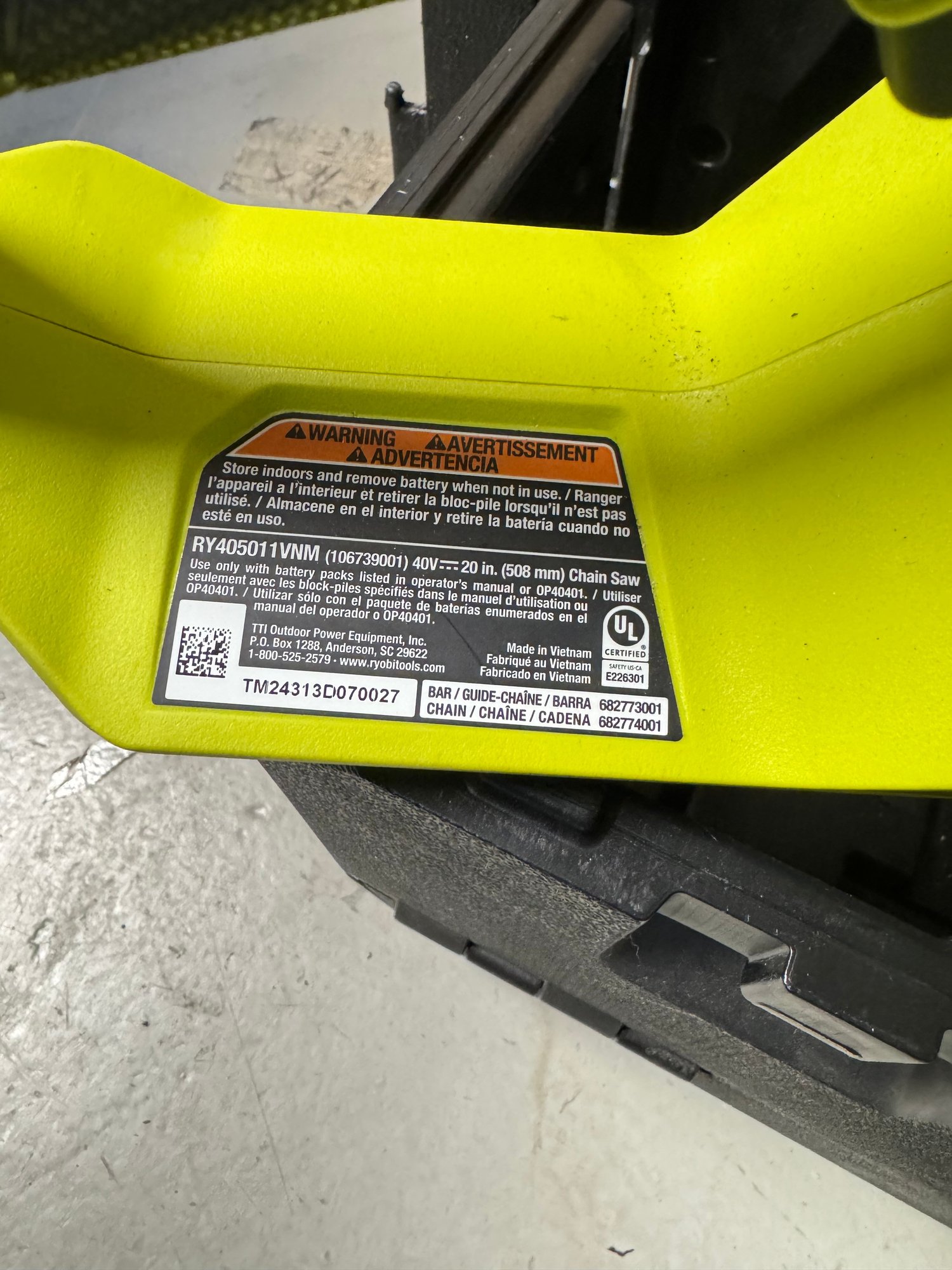 40V Ryobi Chainsaw