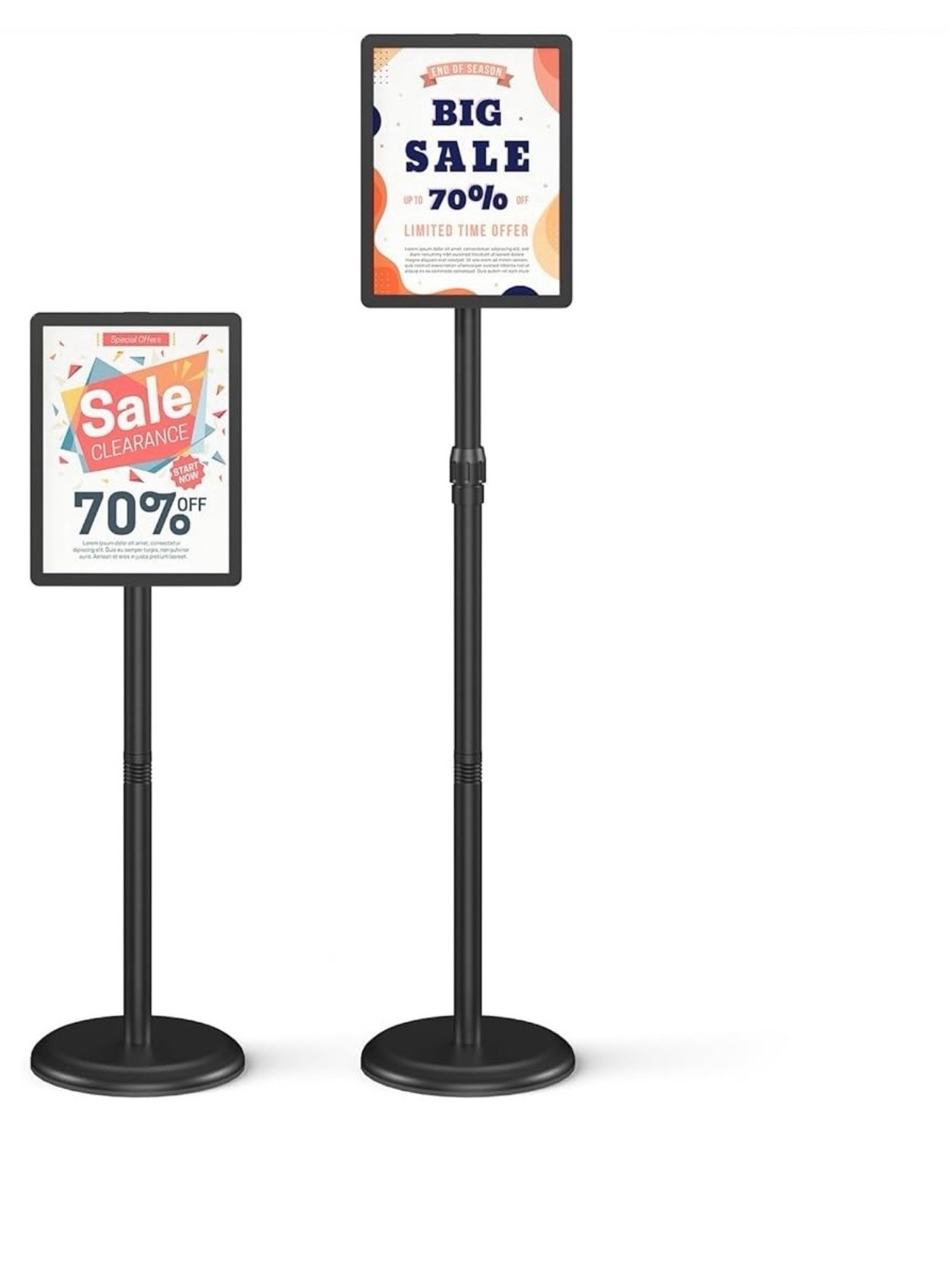 Floor Standing Poster Sign Holder Stand 8½"x11", Adjustable Pedestal, Aluminum Snap Open Frame for Outdoor and Indoor Sign Display