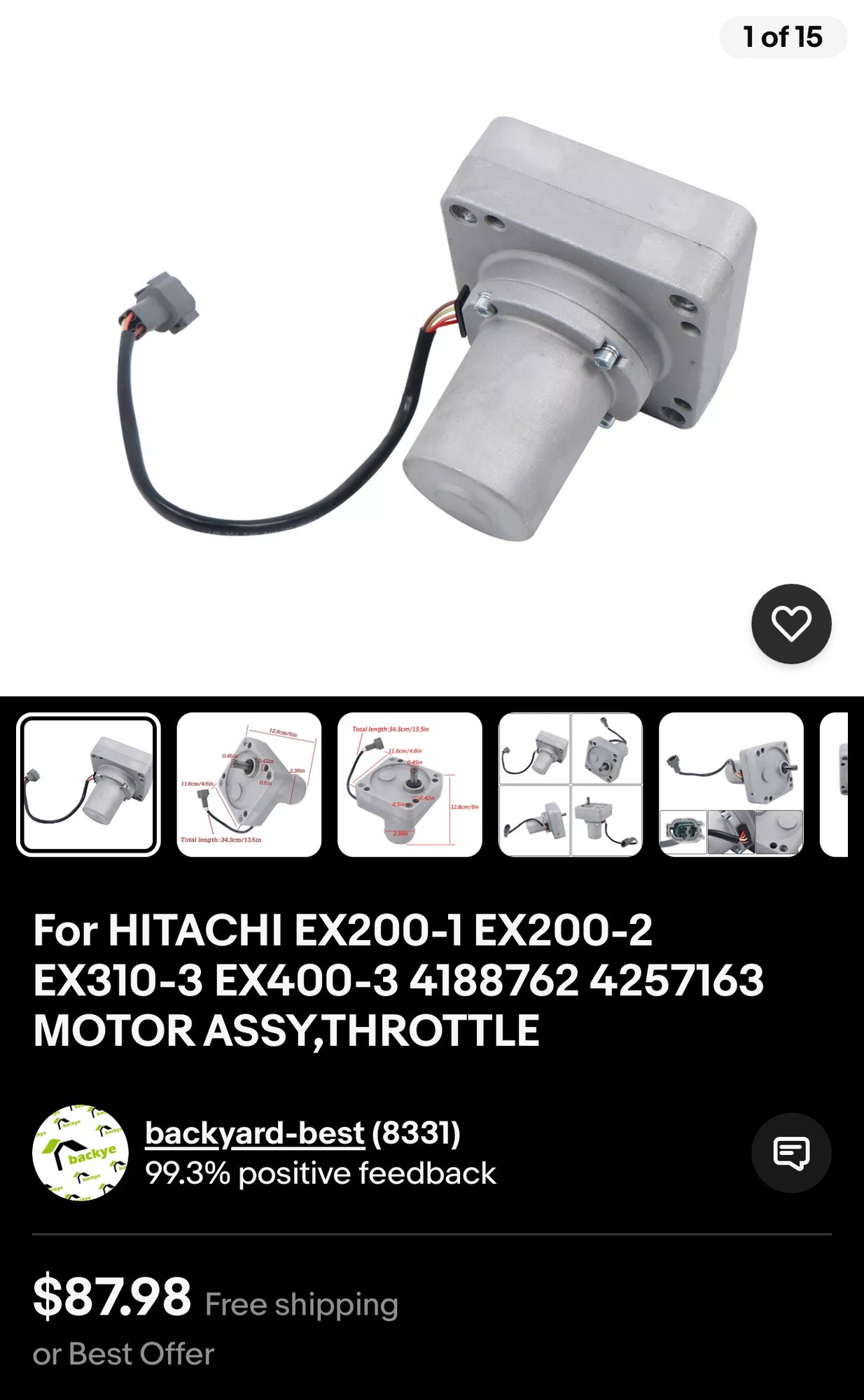 For HITACHI EX200-1 EX200-2 EX310-3 EX400-3 4188762 4257163 MOTOR ASSY, THROTTLE