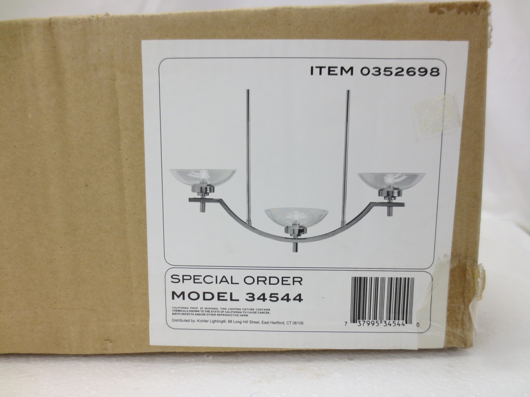 Kichler 3 Light Chrome Chandelier. Fixture Is 29 Inches Wide.