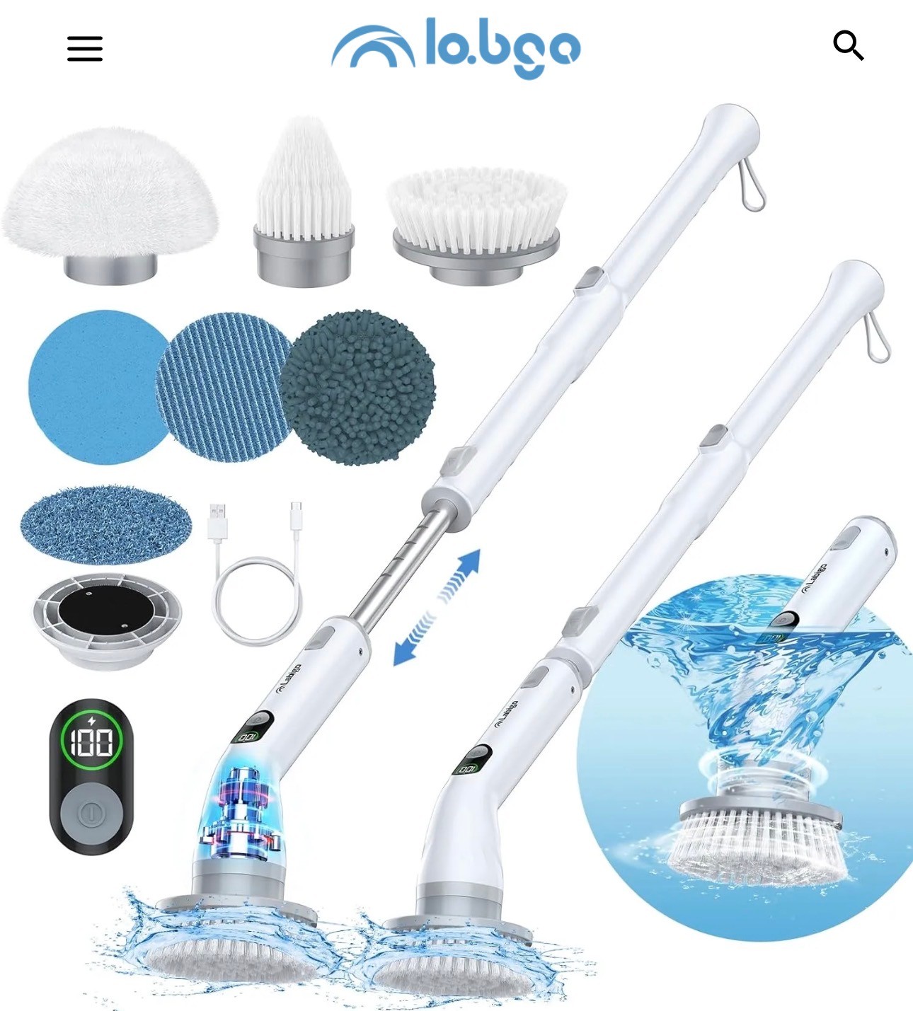 New LABIGO Electric Spin Scrubber, Cordless Cleaning Brush Scrubber with 7 Replaceable Brush Heads and Adjustable Extension Handle, IPX7 Waterproof Power Cleaning Brush for Bathroom Tub Floor Tile Shower