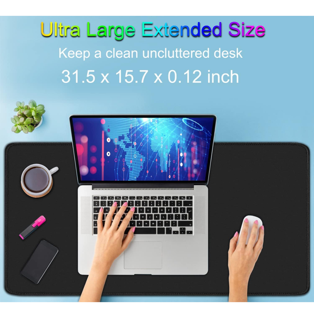 Large Extended Gaming Mouse Pad with Stitched Edges, (31.5X15.71n) Durable Non-Slip Natural Rubber Base, Waterproof