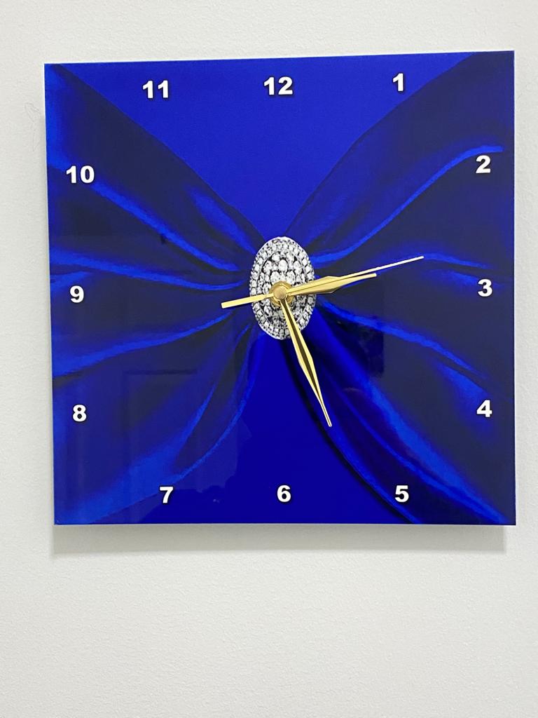 3dRose Royal Blue Velvet Sash With Round Diamond Jewel Look Wall Clock, Silent uncovered quartz mechanism requires one aa battery