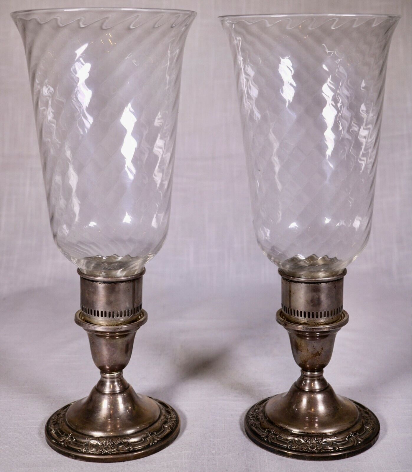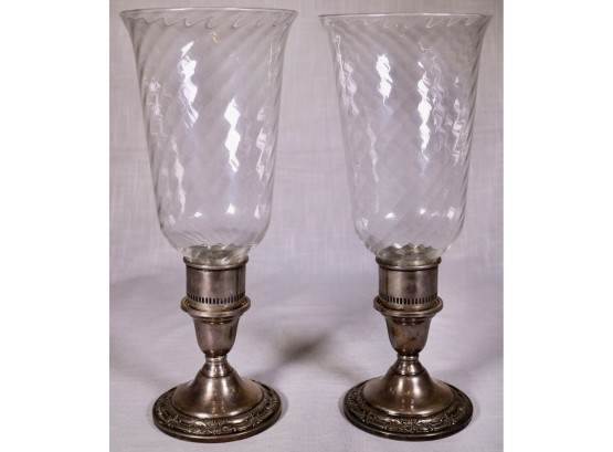 Pair of Mid-Century International, Wild Rose sterling silver candleholders. The base is weighted and marked on the bottom "Wild Rose International", "Sterling", "Weighted Reinforced" and "N243".