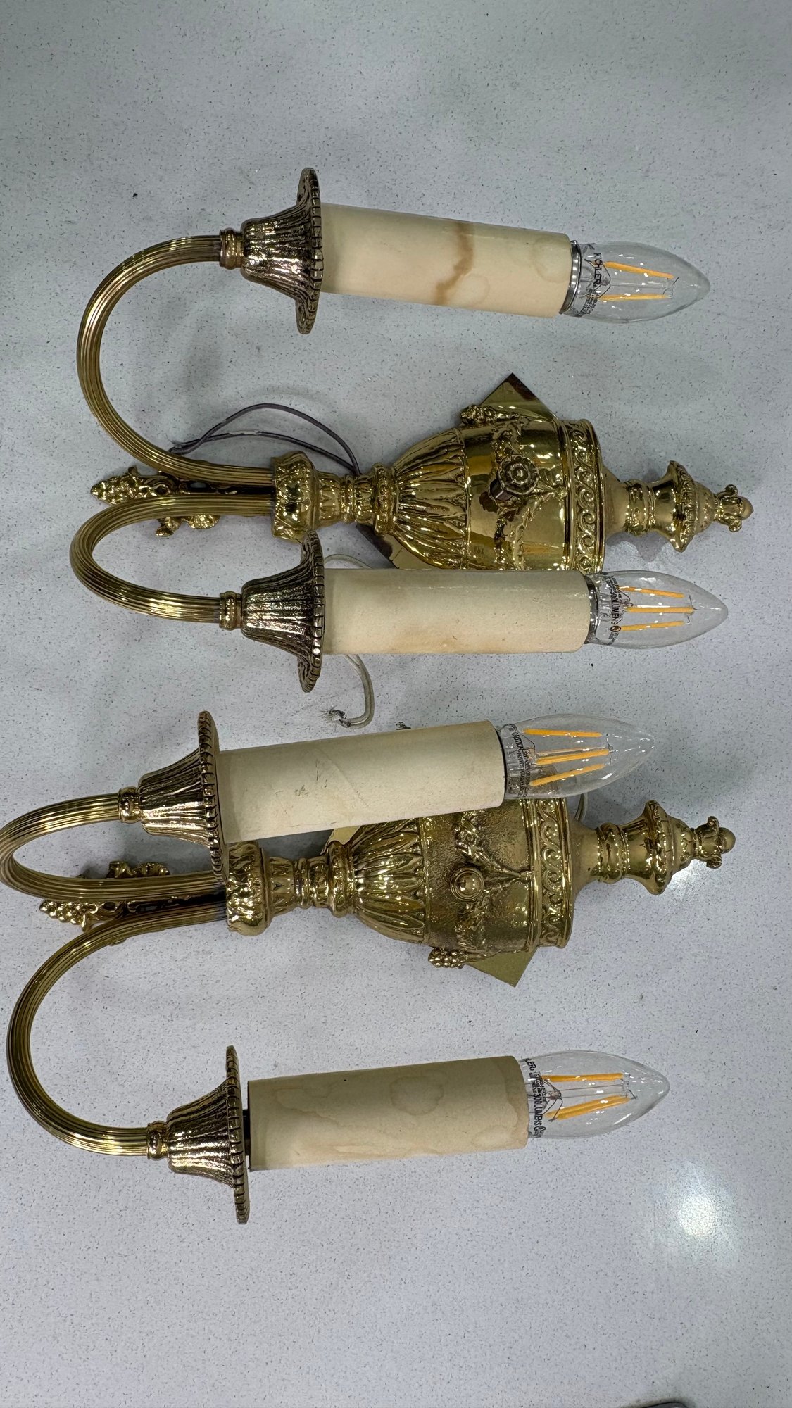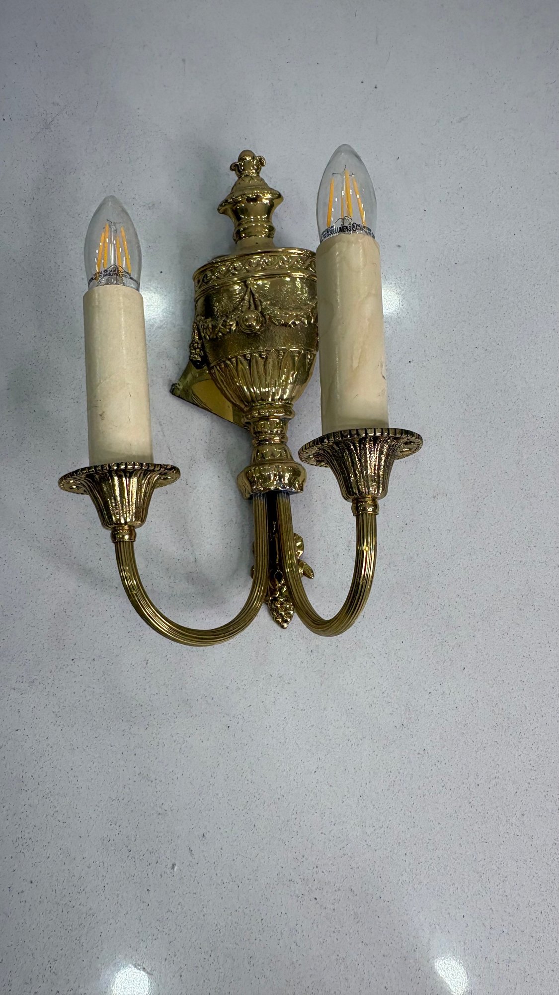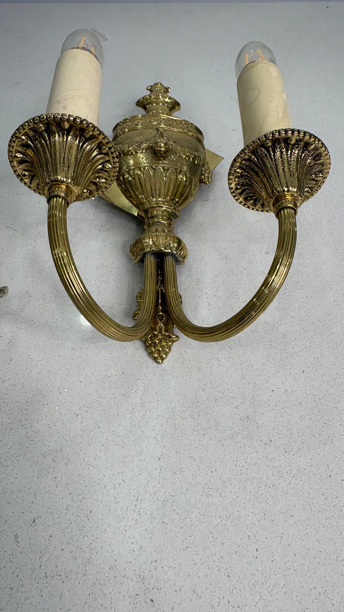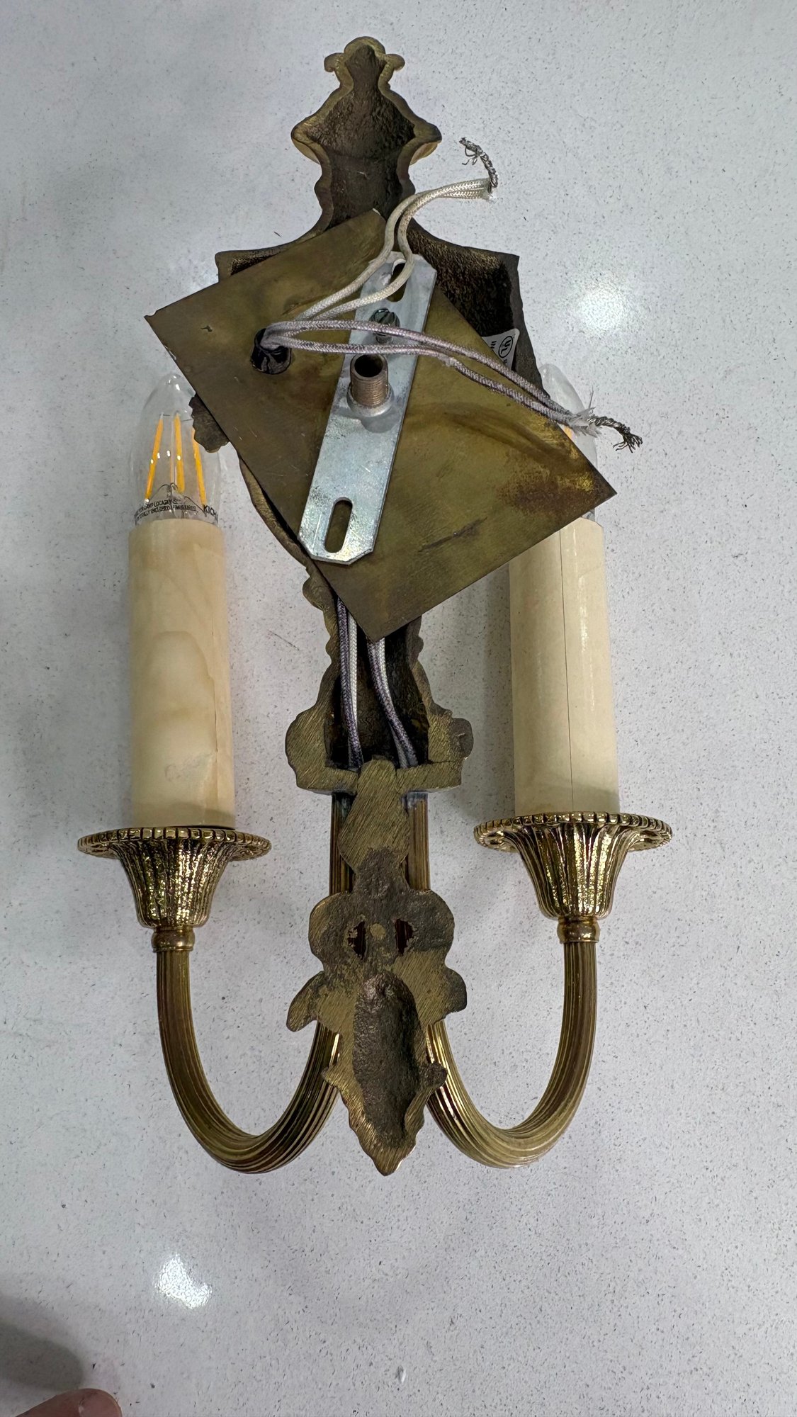 Pair Victorian French Double Arm Brass Wall Sconces Candle Style Wired Working