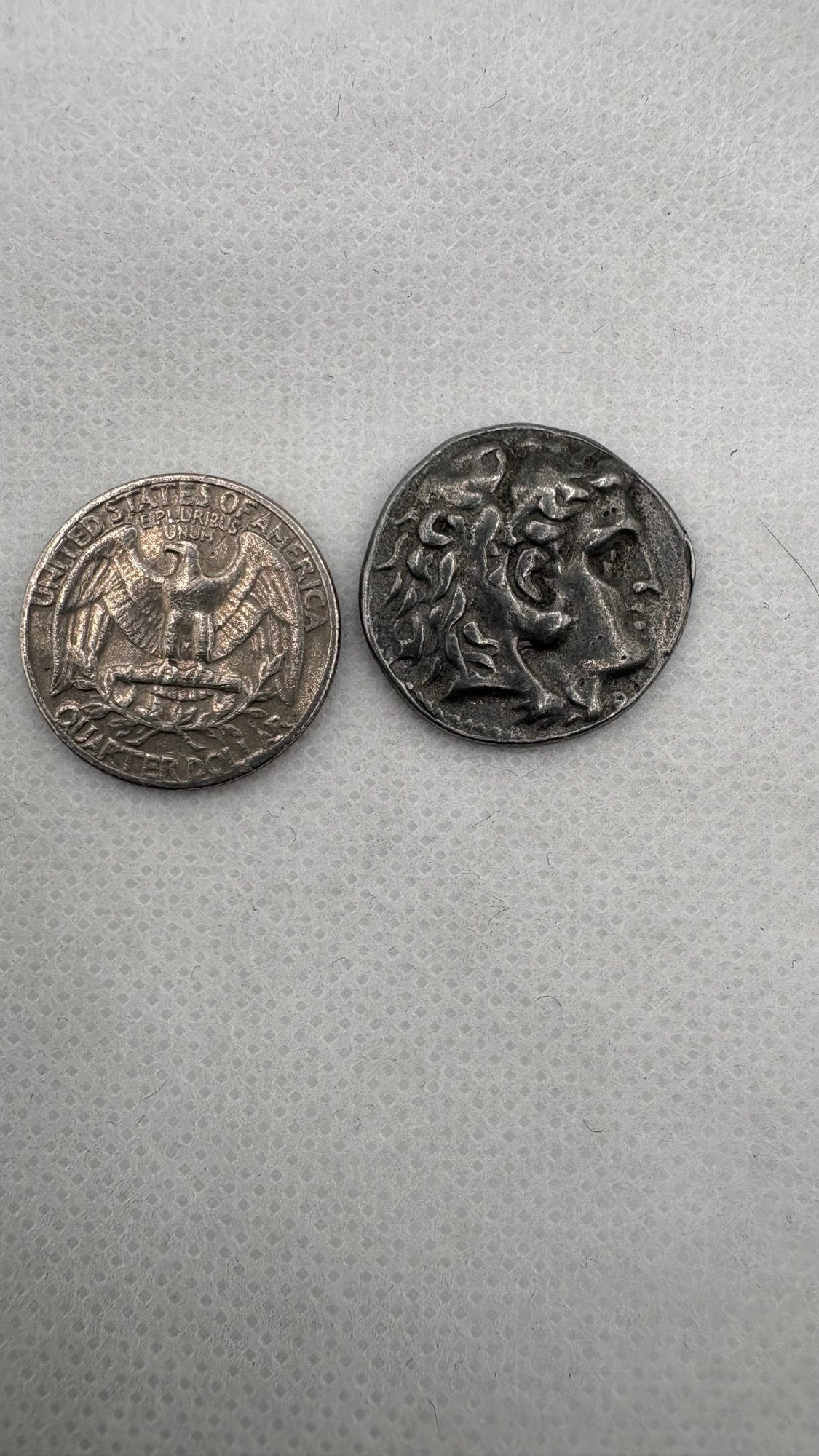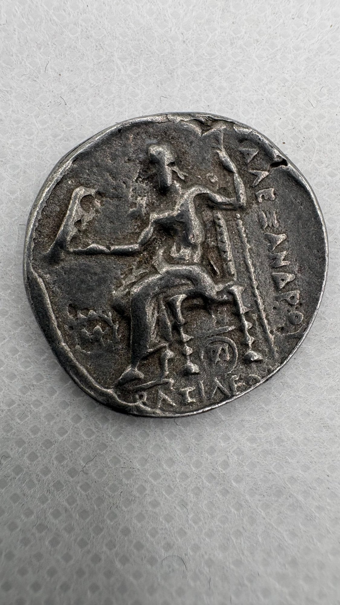 Historic ancient Greek silver tetradrachm coin dating to the reign of Alexander the Great, one of the most influential figures of antiquity. These coins were widely struck across Alexander’s empire and typically feature Herakles (Hercules) on the obverse and Zeus seated on a throne on the reverse.