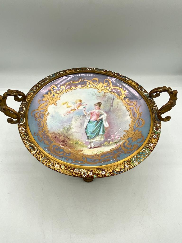 Notes: Good antique condition French Champlevés Enamel Bronze Serving Porcelain Centerpiece Stamped