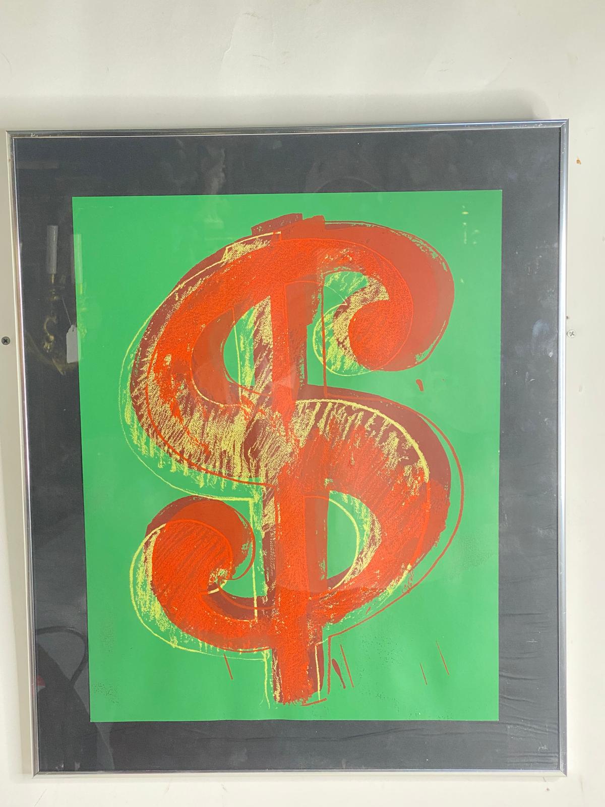 Art Attributed Andy Warhol Dollar Sign Green Sunday Stamp on the back and framed