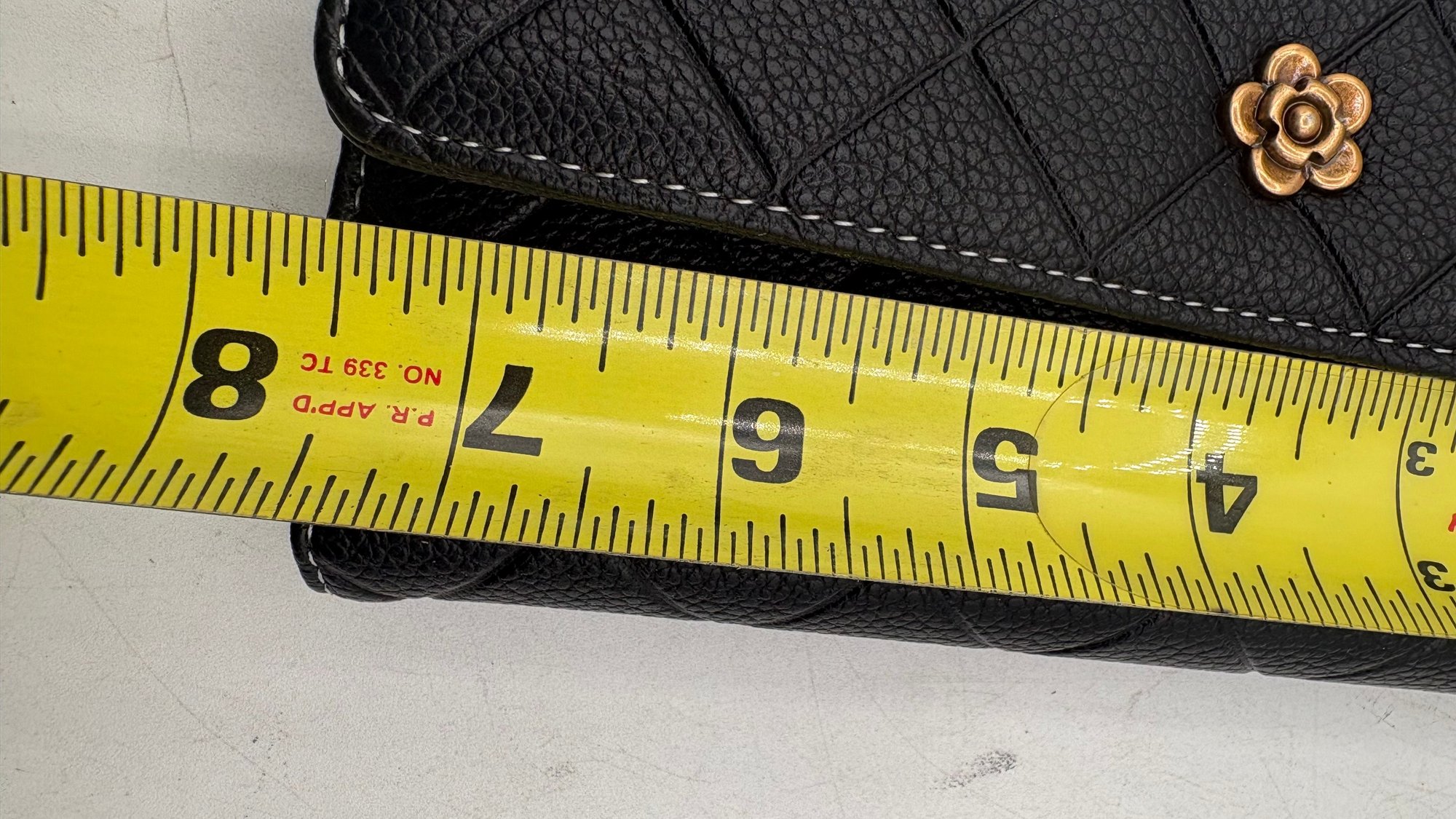 Black Quilted Leather Wallet Clutch Gold Floral Snap Genuine Leather 1-2