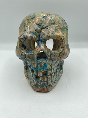 Blue Green & Gold Ceramic Skull , you can easily fit a candle in the back of the skull