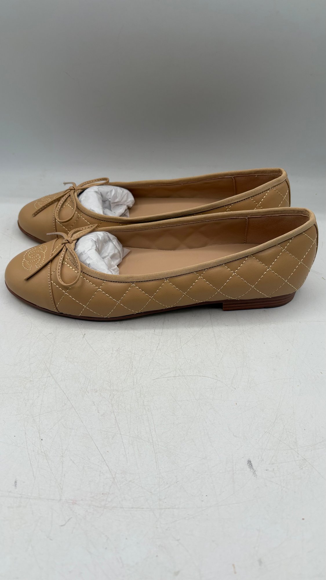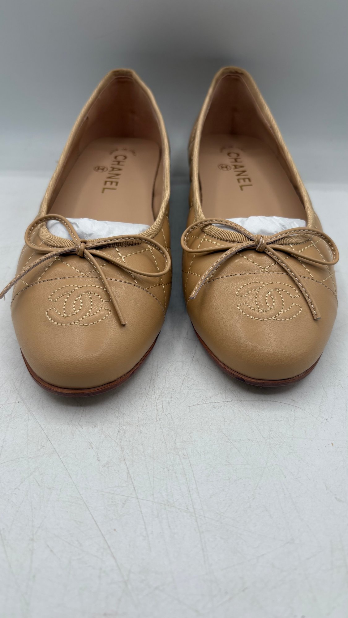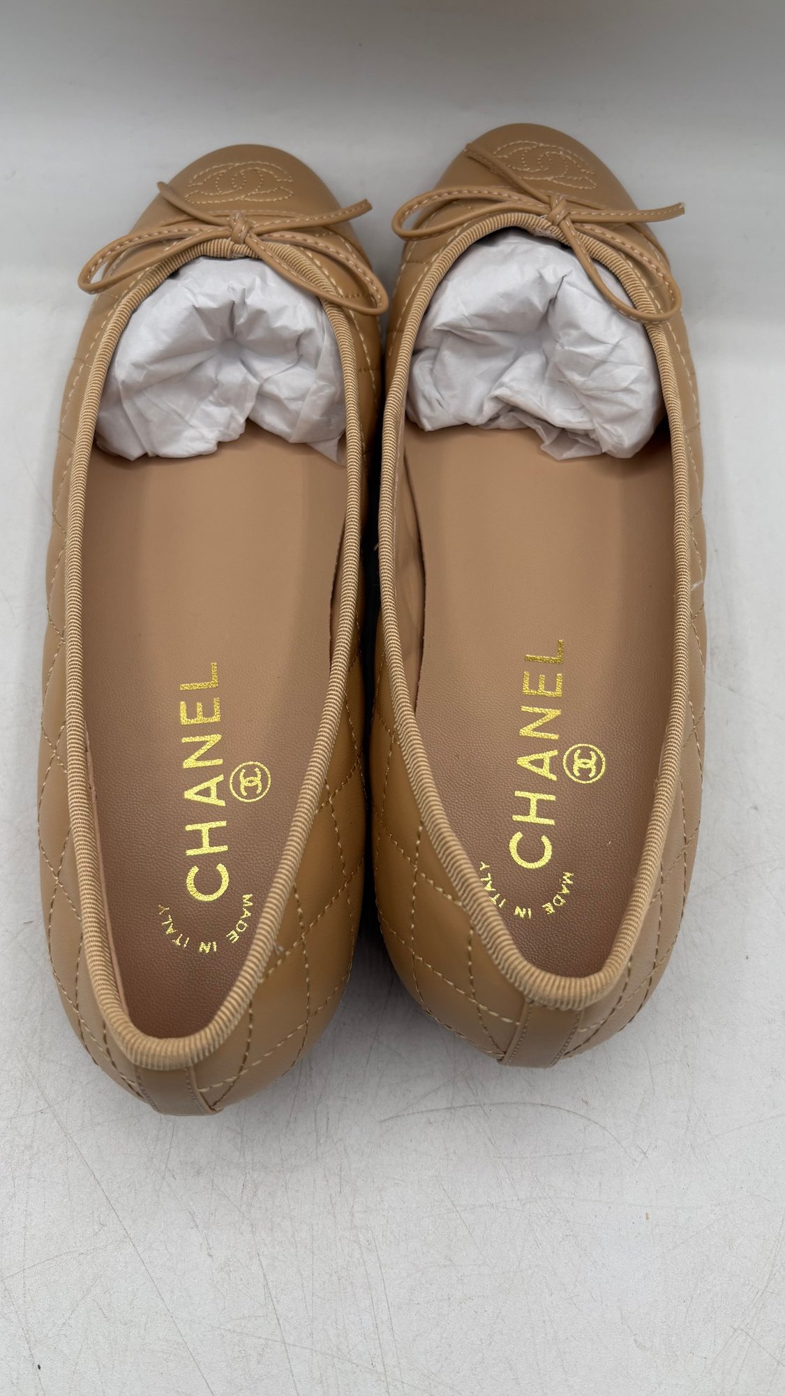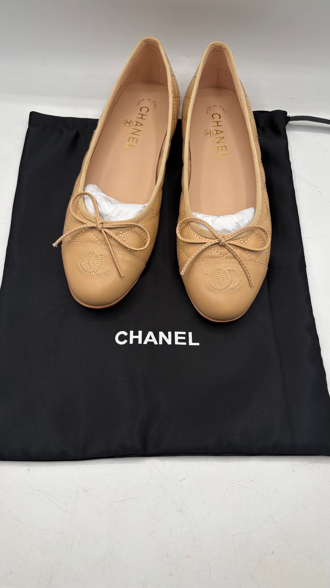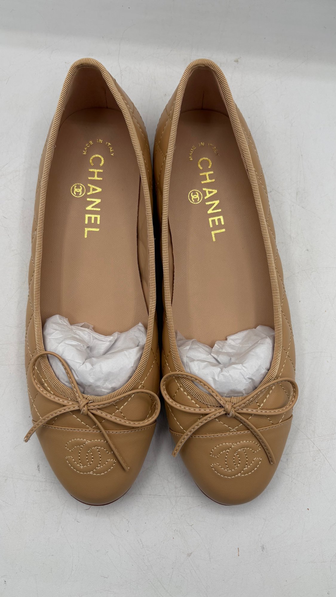 Elegant ballet flats / pumps marked Chanel, women’s size 38C. New, unworn condition with a classic luxury look.