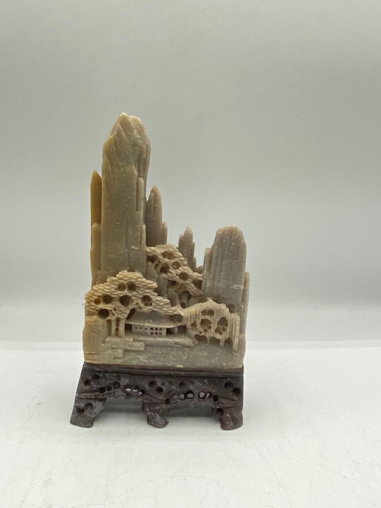 Chinese Soapstone Hand Carved Mountains And Village