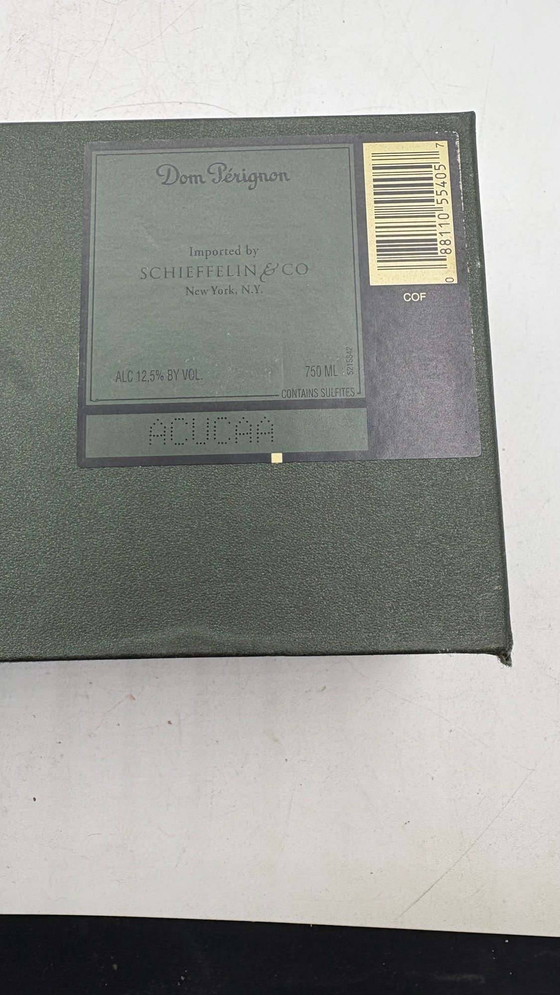 Beautifully preserved Dom Pérignon Vintage 1998 presented in its original green presentation box. A hallmark of elegance and precision, this vintage is celebrated for its exceptional balance, depth, and age-worthy structure — one of the standout releases of the late 1990s.