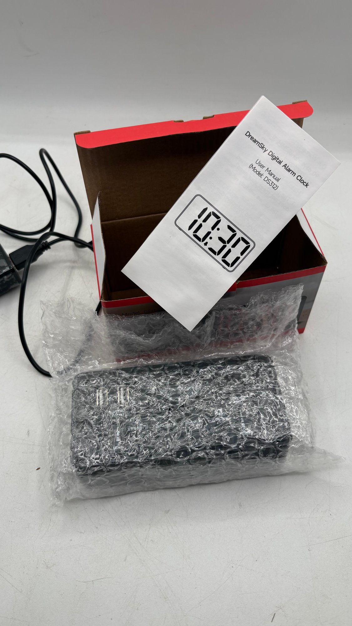Up for auction is a DreamSky Alarm Clock (Model DS312BW), brand new in original packaging. A simple and reliable bedside clock featuring a clear digital display and easy-to-use controls.