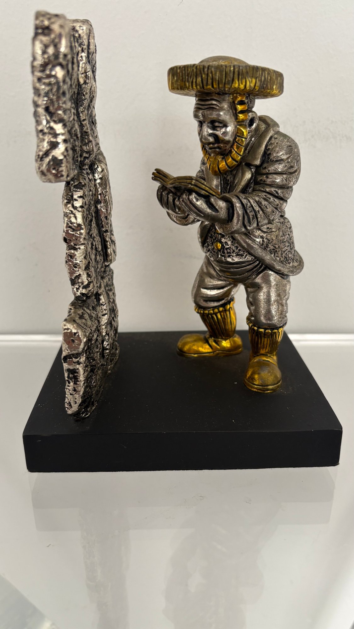 Beautiful H. Karshi sterling silver sculpture from Jerusalem, depicting a figure praying by the Western Wall. Crafted in 925 sterling silver, this piece highlights intricate detailing and fine artistry.