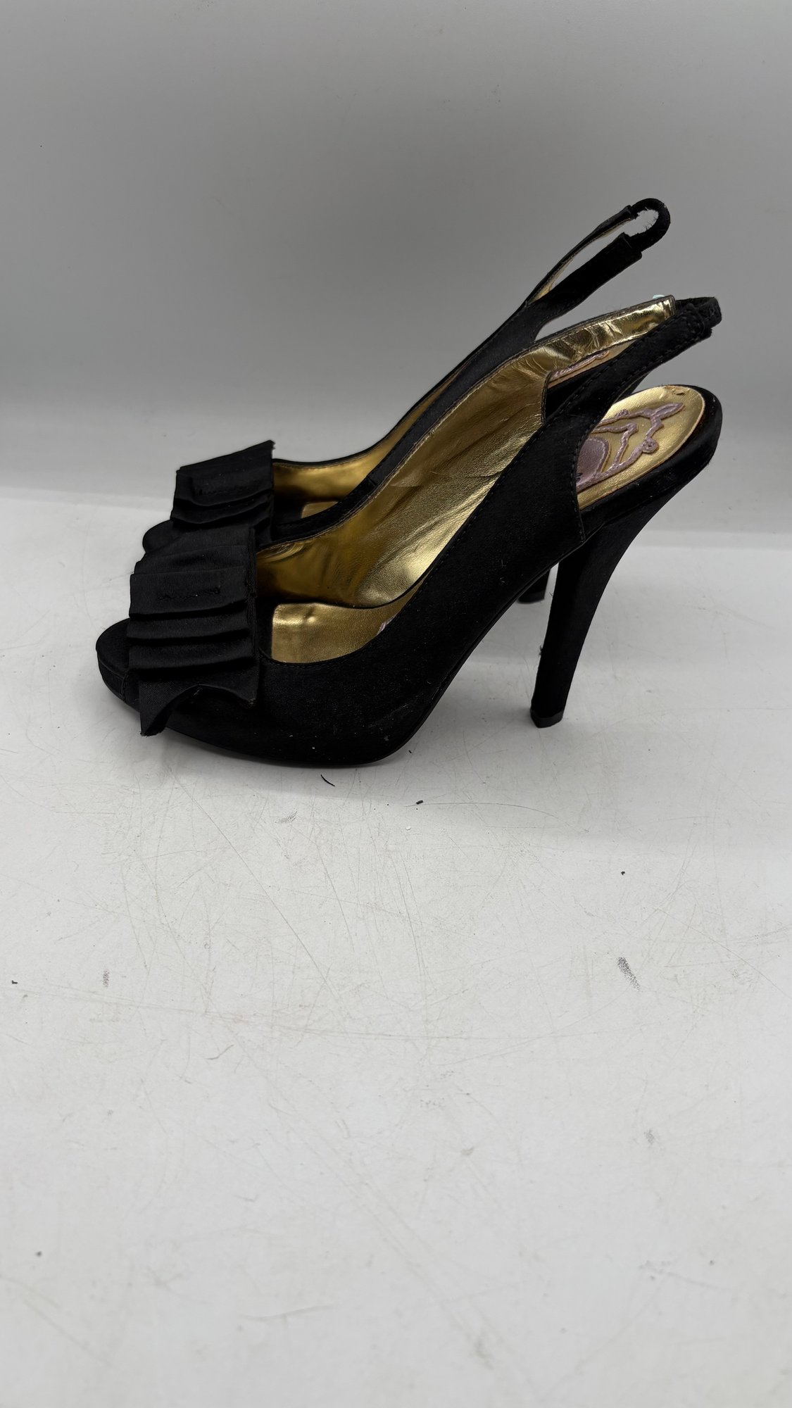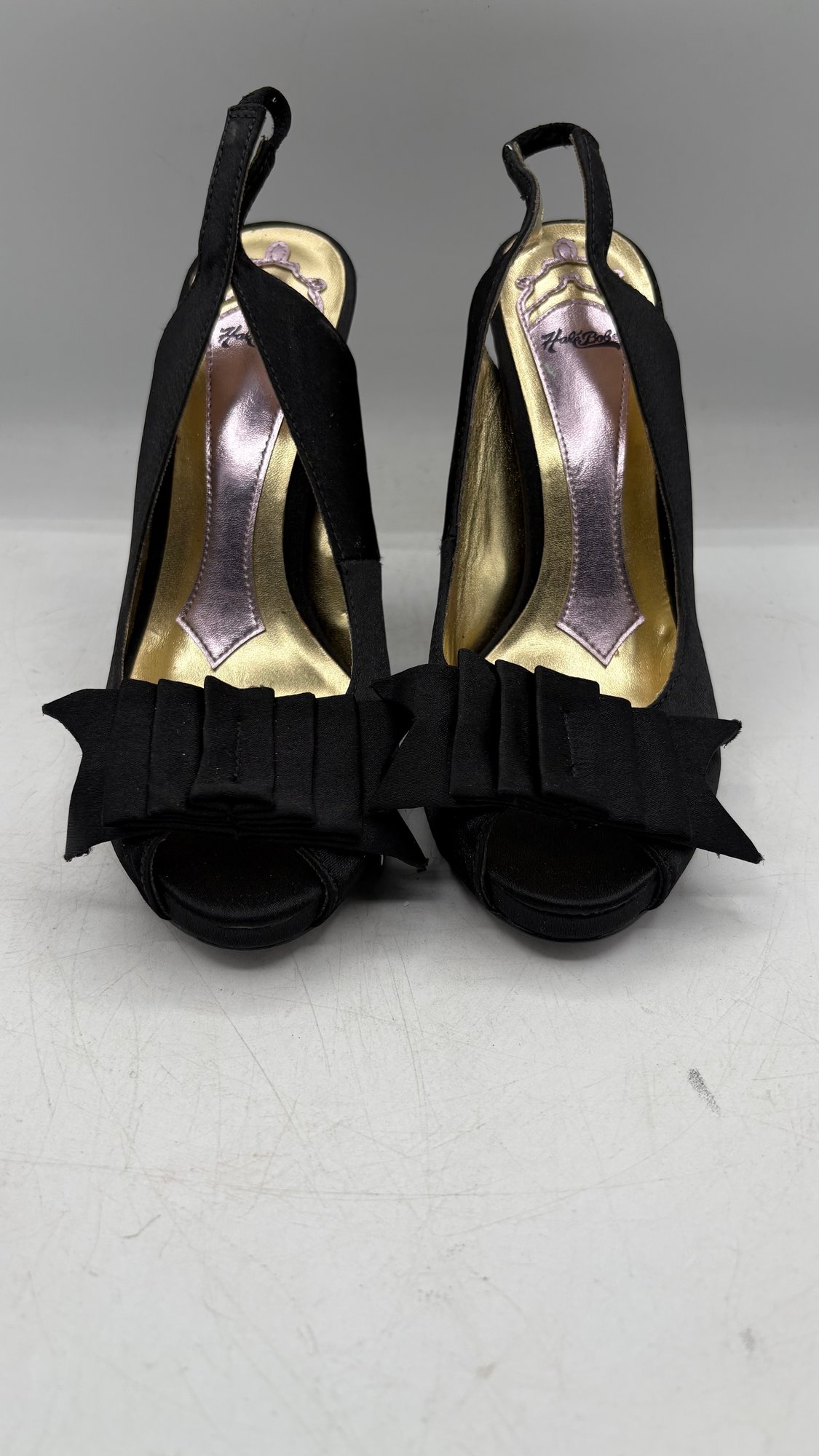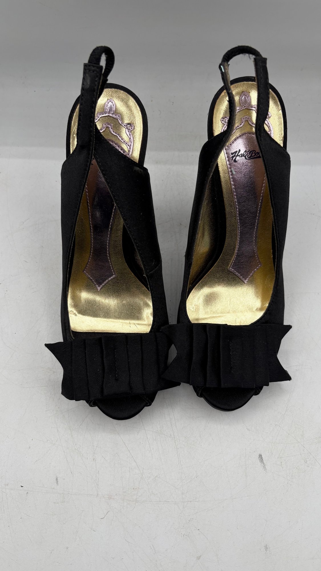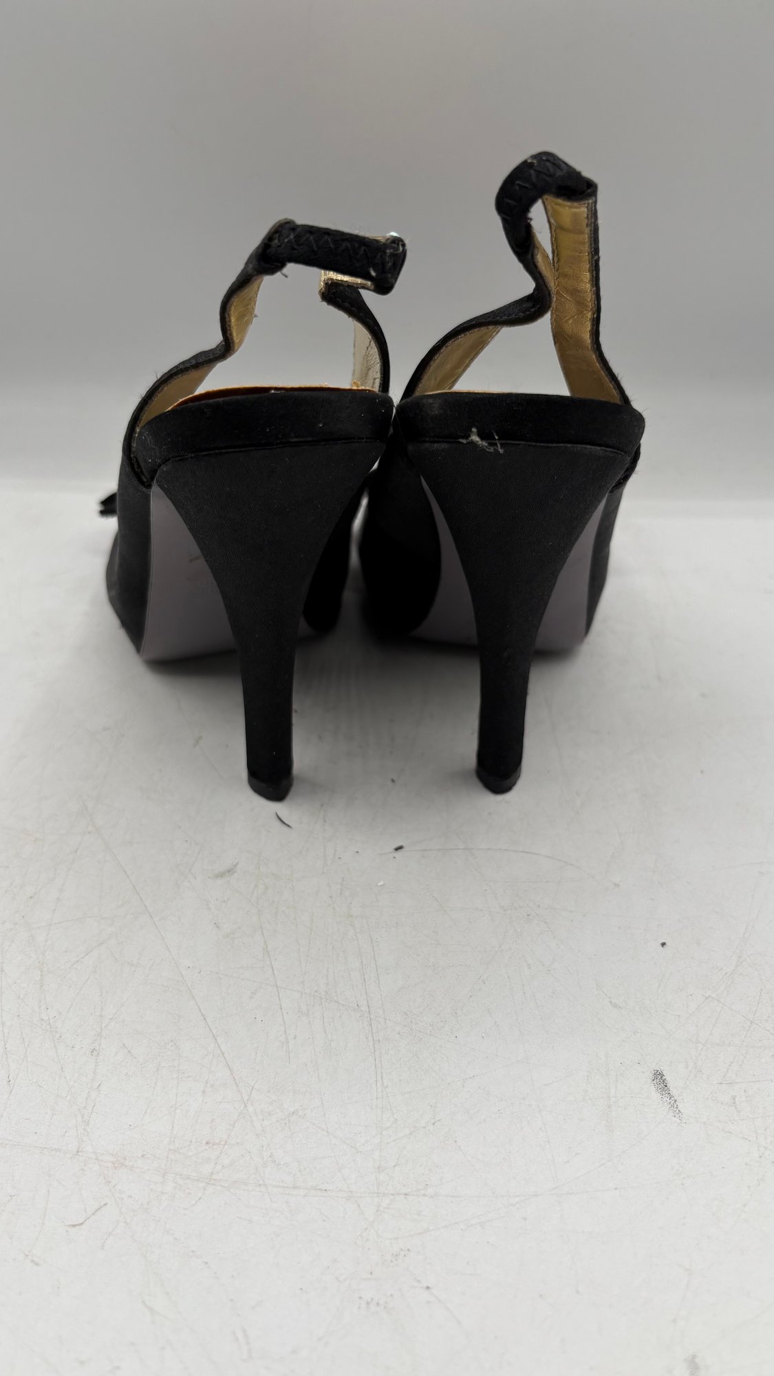 Elegant Hali Bob heels crafted in luxurious black satin, featuring a slingback strap for a secure fit and a 5-inch heel for added height and sophistication. Perfect for evening events, parties, or formal occasions.