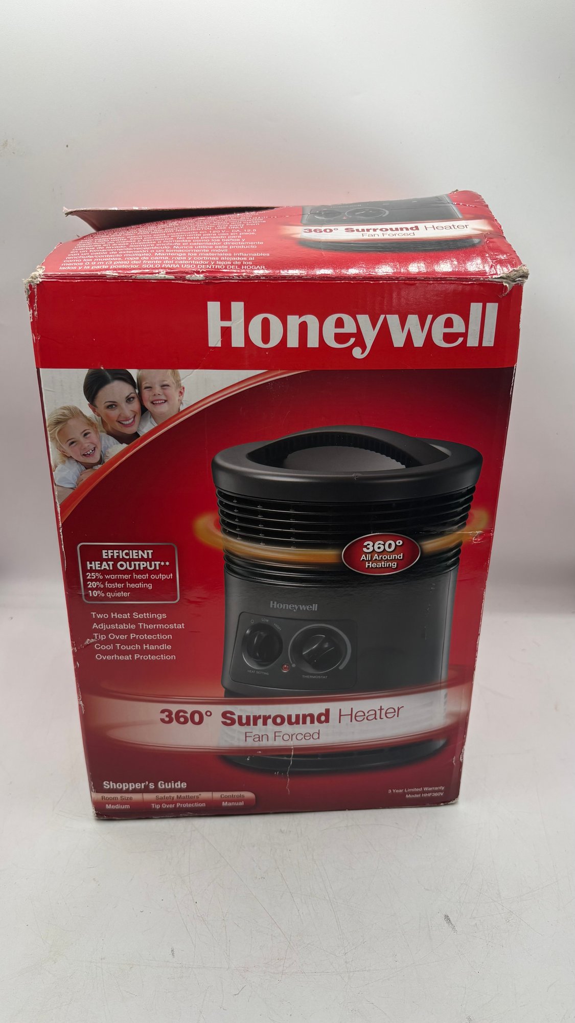 Compact and powerful Honeywell 360 Degree Surround Fan-Forced Heater, designed to provide all-around warmth with even heat distribution. The circular design allows heat to flow in every direction, making it ideal for bedrooms, offices, or small living spaces.