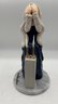 Vintage signed José Riva Judaica sculpture depicting a woman covering her eyes while lighting Shabbat candles. Hand-formed ceramic figure with glossy and matte glazing, mounted on a round polished marble base. Original twin brass candlesticks attached. Base is artist-signed “Jose Riva.” Measures approximately 8 inches tall. A classic mid-century Judaica collectible from a well-known Israeli artist. Light age wear consistent with display.