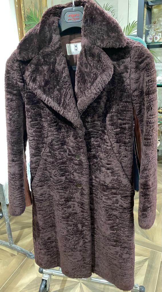 Ladies Brown Wool Blend Coat, Size 42, Made In Italy By Oliver