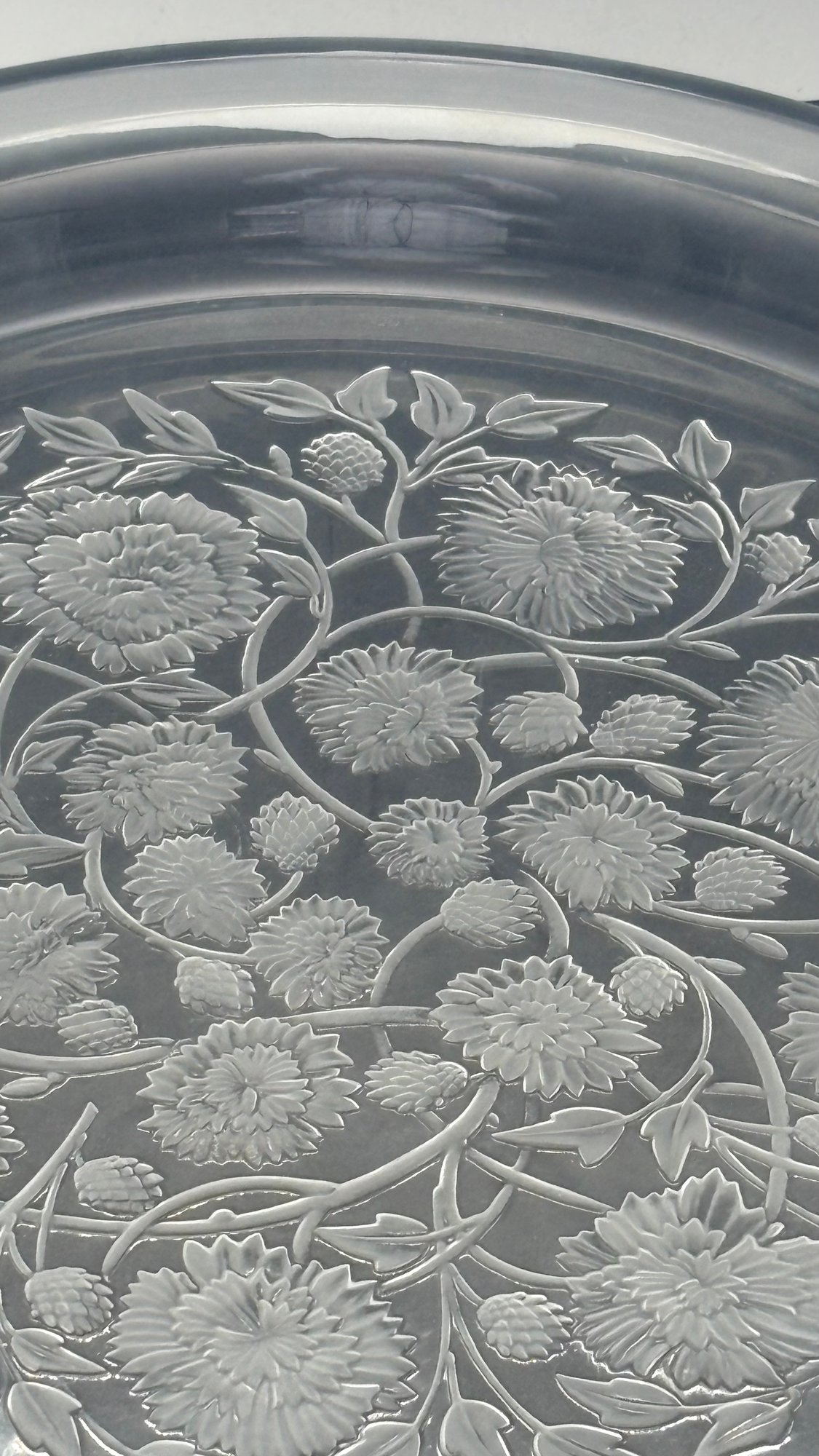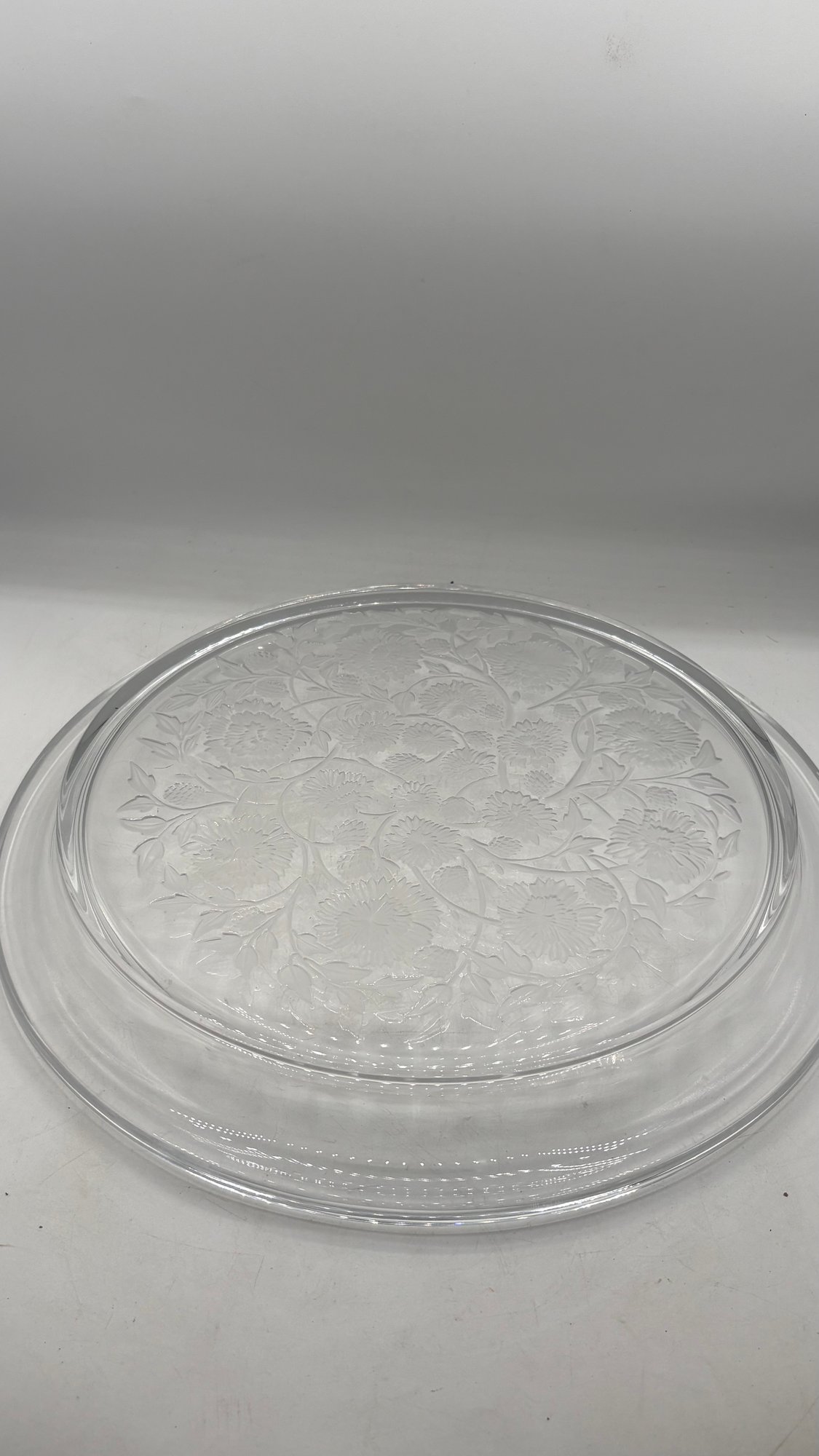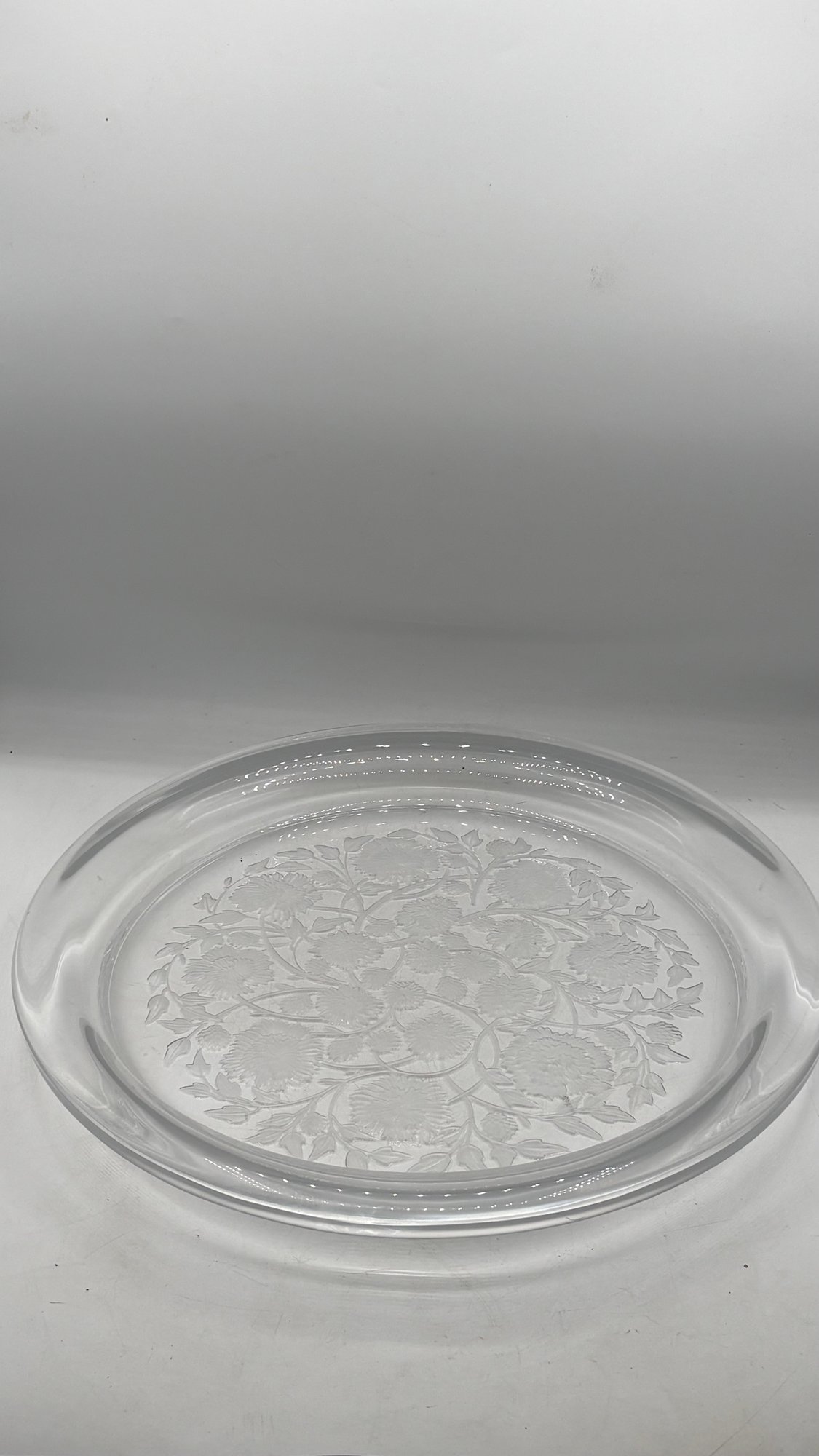 Elegant and substantial Lalique crystal charger platter, showcasing the brand’s signature clarity, brilliance, and refined craftsmanship. This large statement piece is beautifully formed with a wide, shallow profile, making it ideal as a centerpiece, serving platter, or decorative display tray.