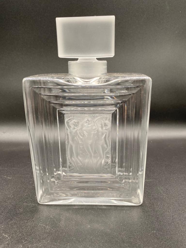Lalique Duncan Flacon Crystal Perfume Bottle signed 4.75ʺW × 2ʺD × 8ʺH